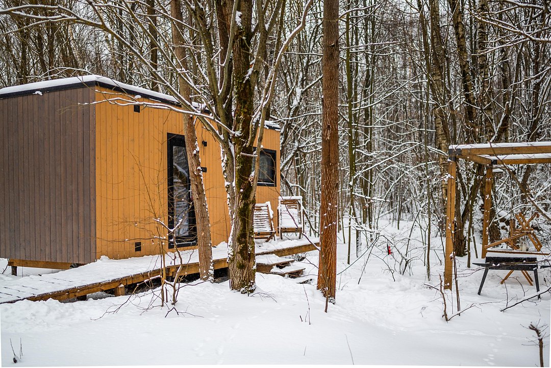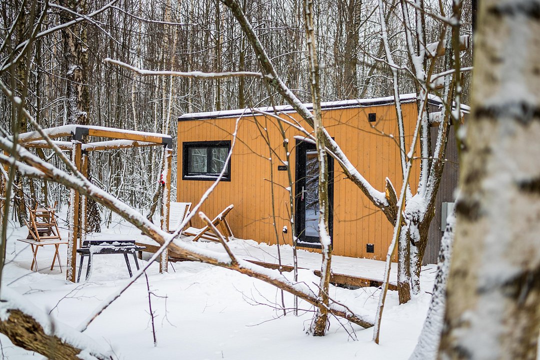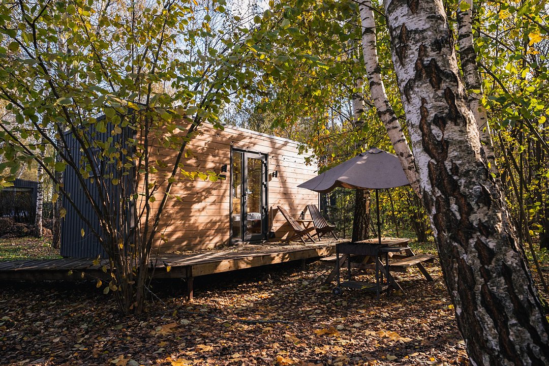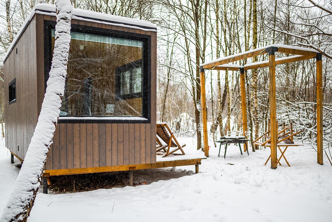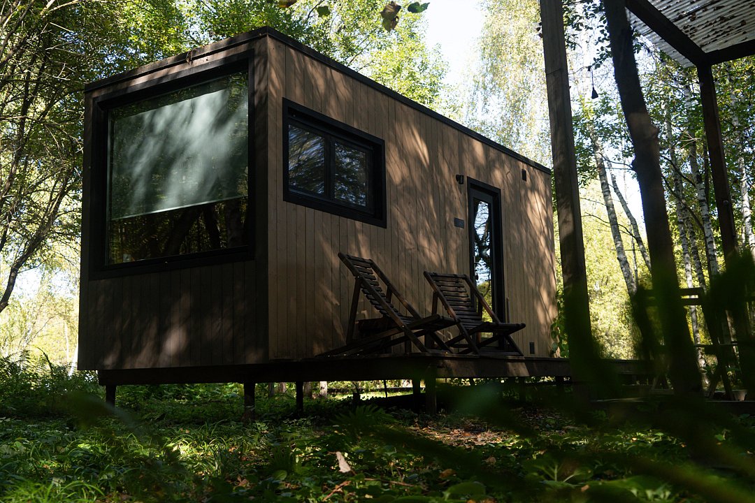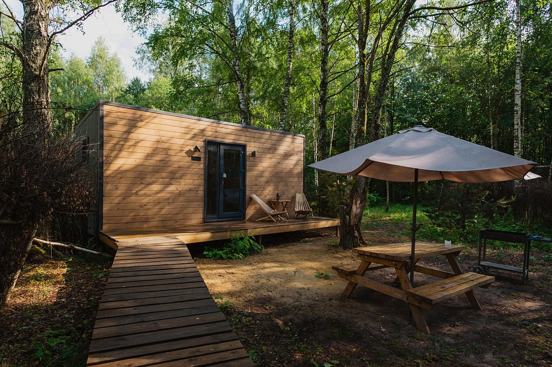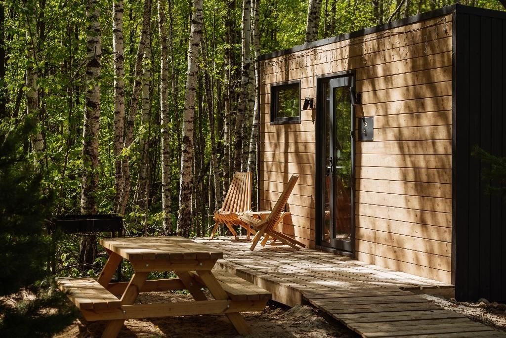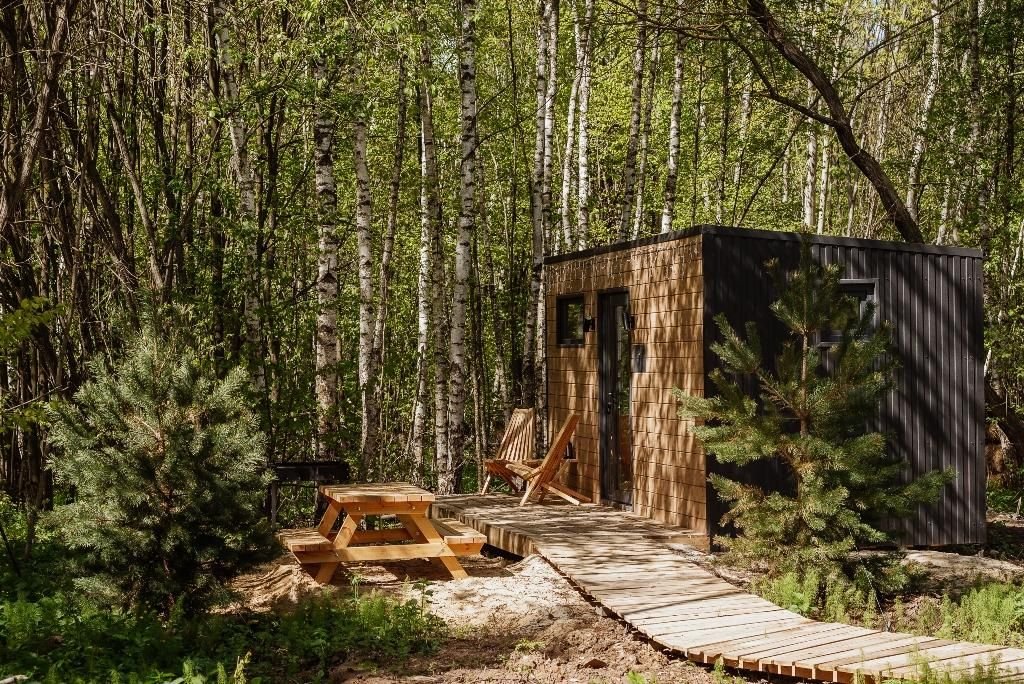 Глэмпинг «Терруар» предлагает уютные скандинавские домики для отдыха в живописном месте на границе Московской и Тульской областей.