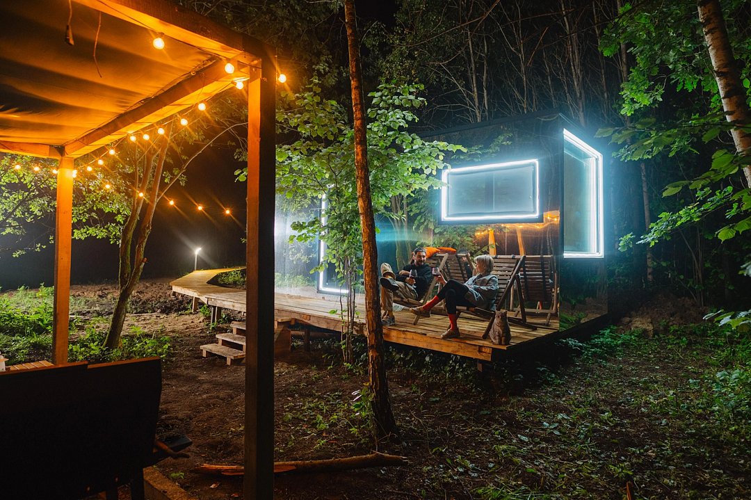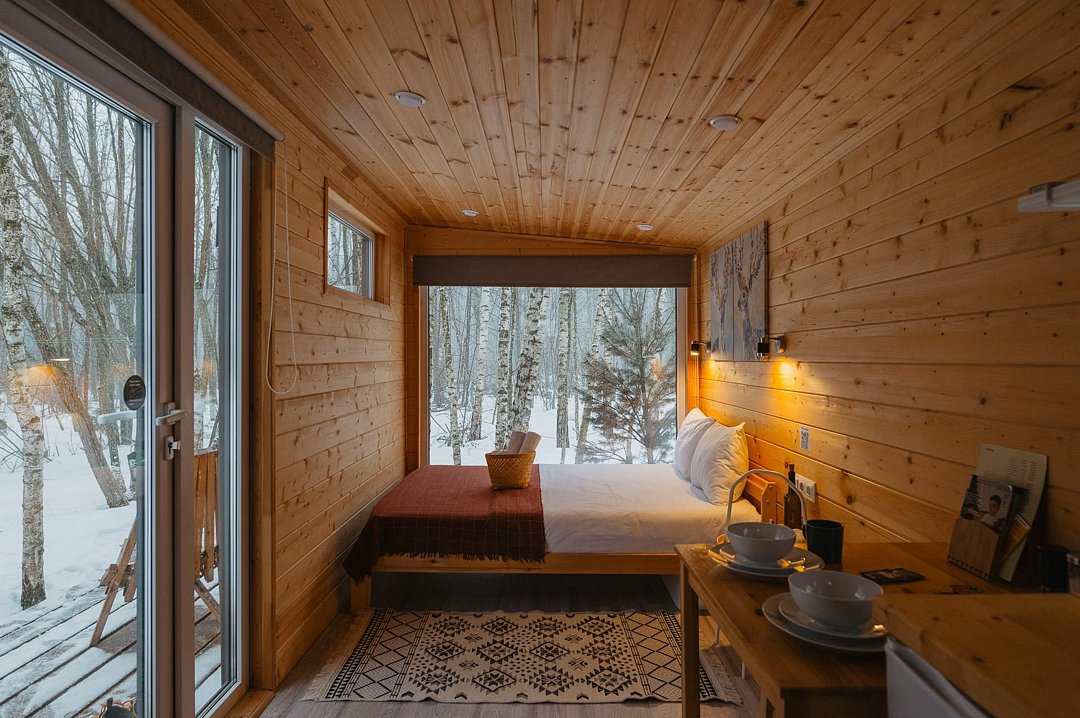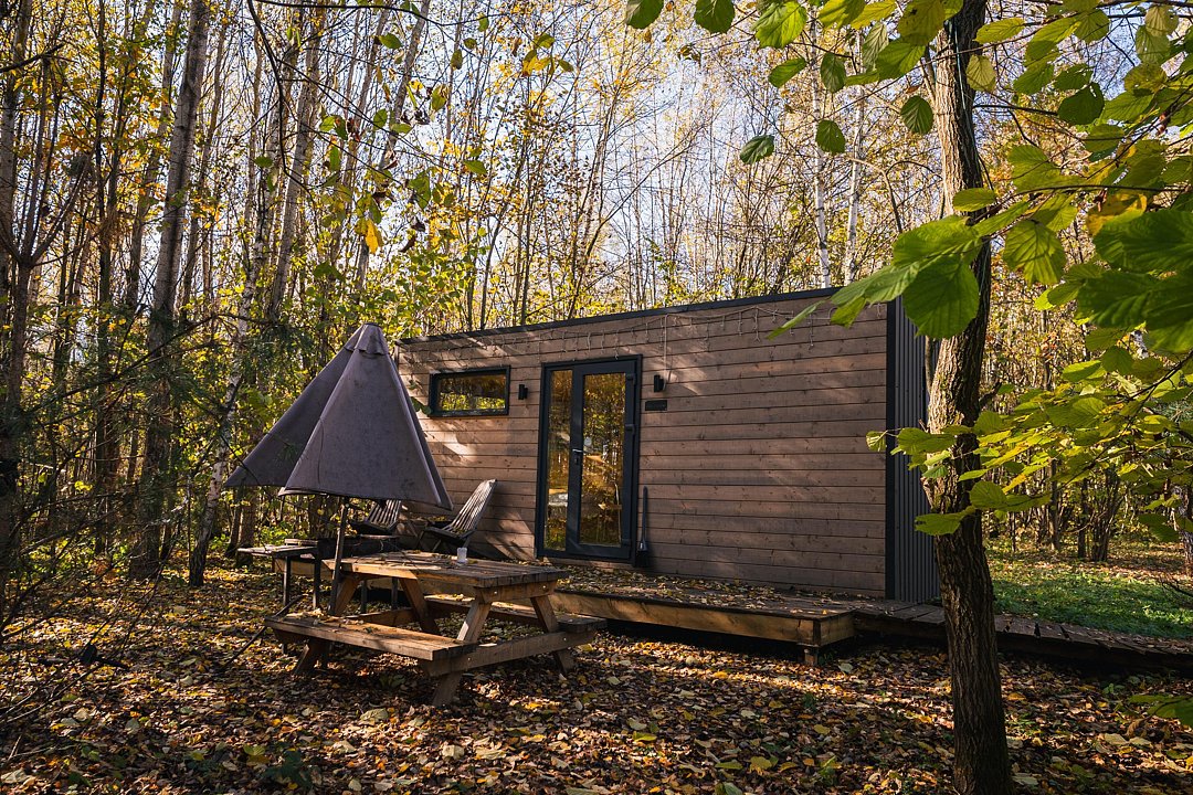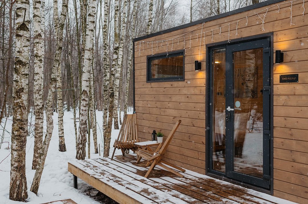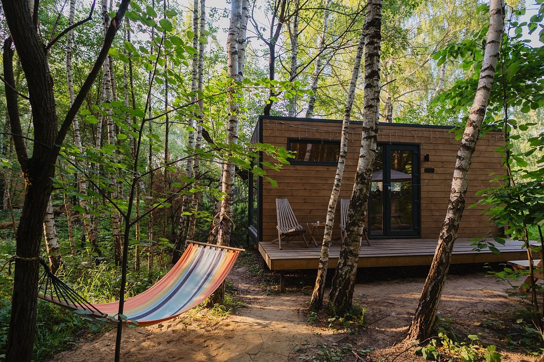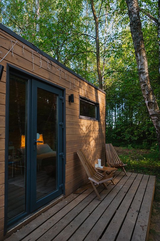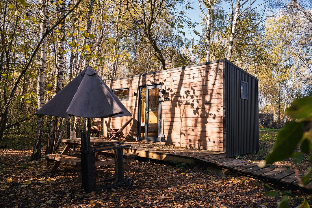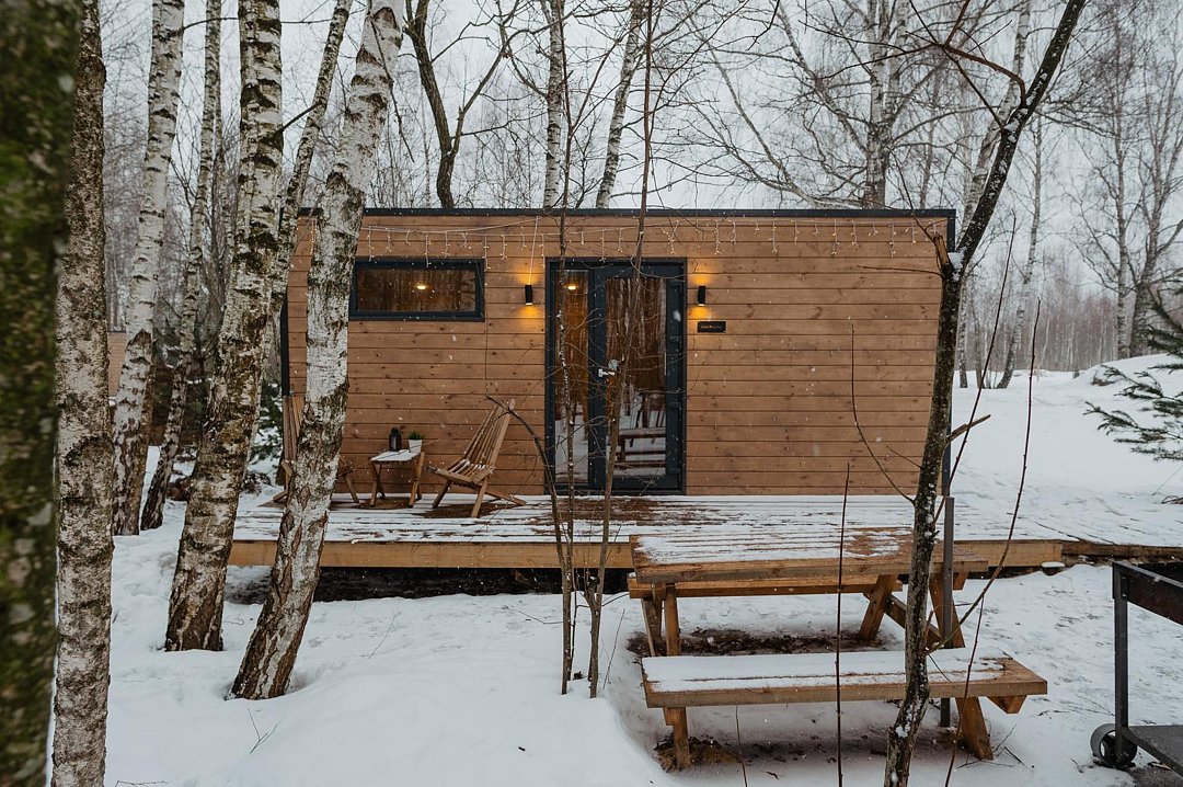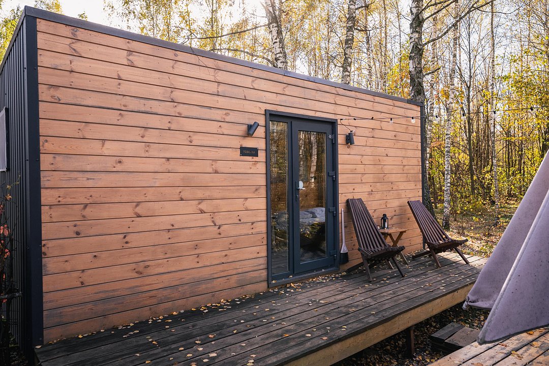 Глэмпинг «Терруар» предлагает уютные скандинавские домики для отдыха в живописном месте на границе Московской и Тульской областей.