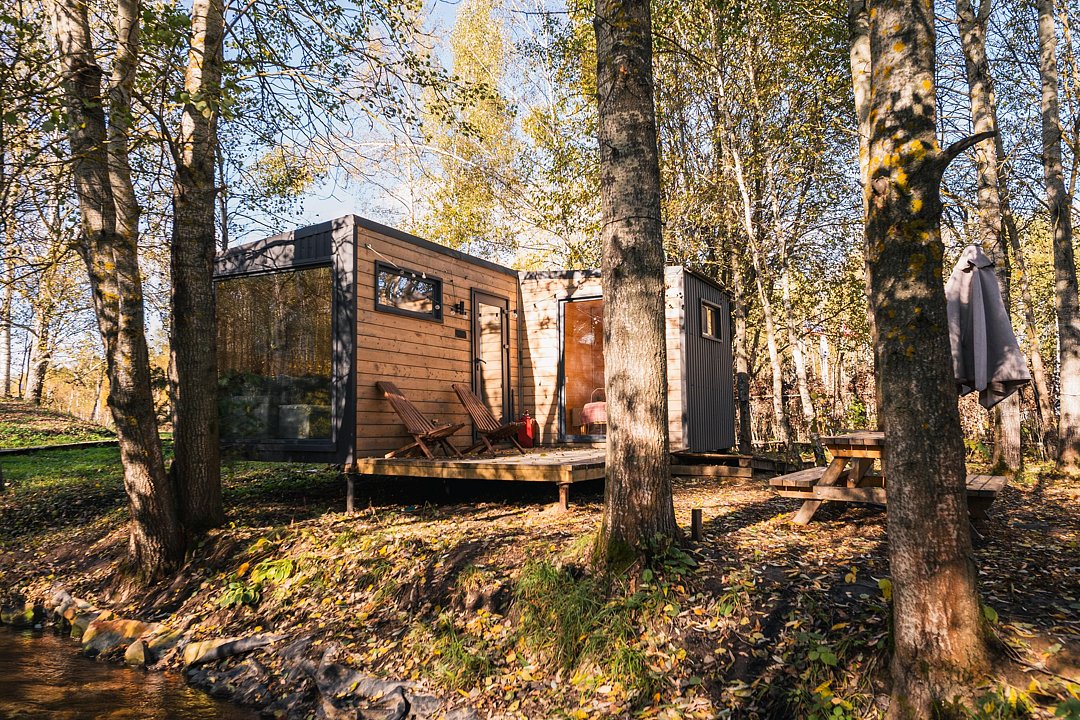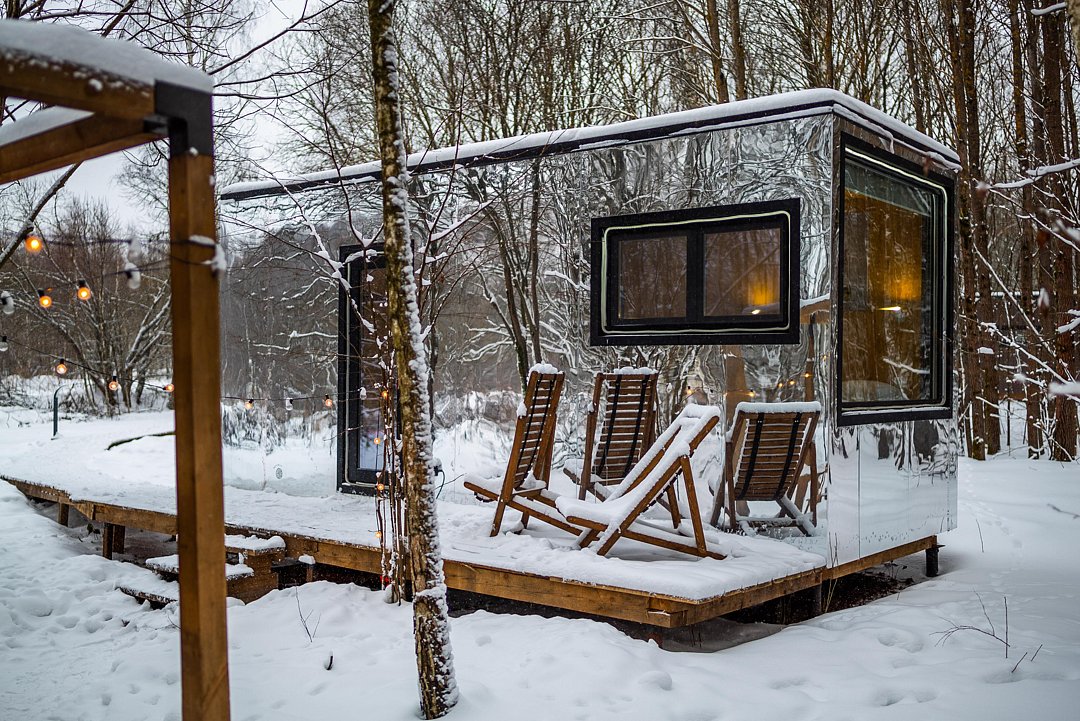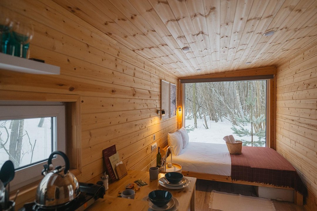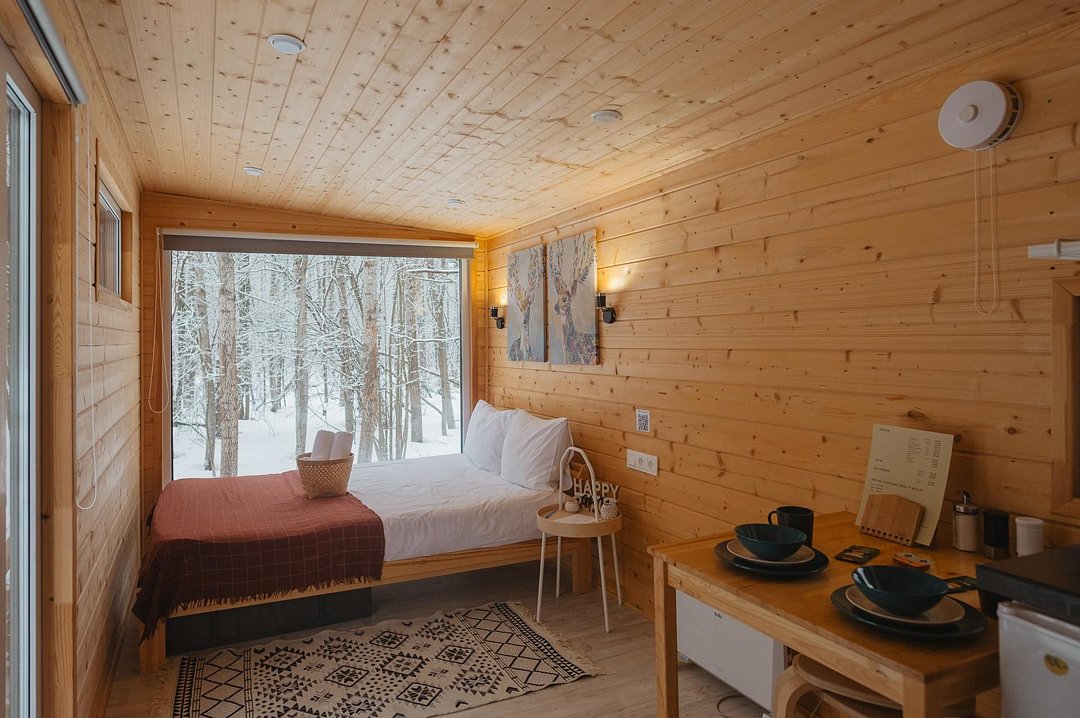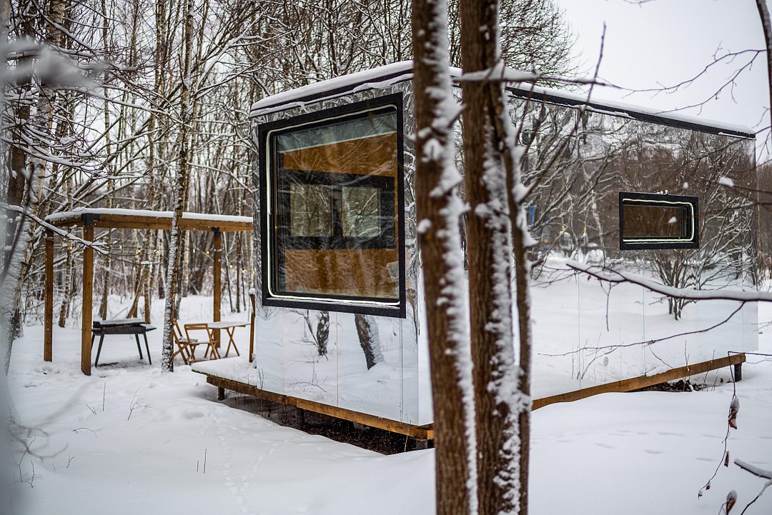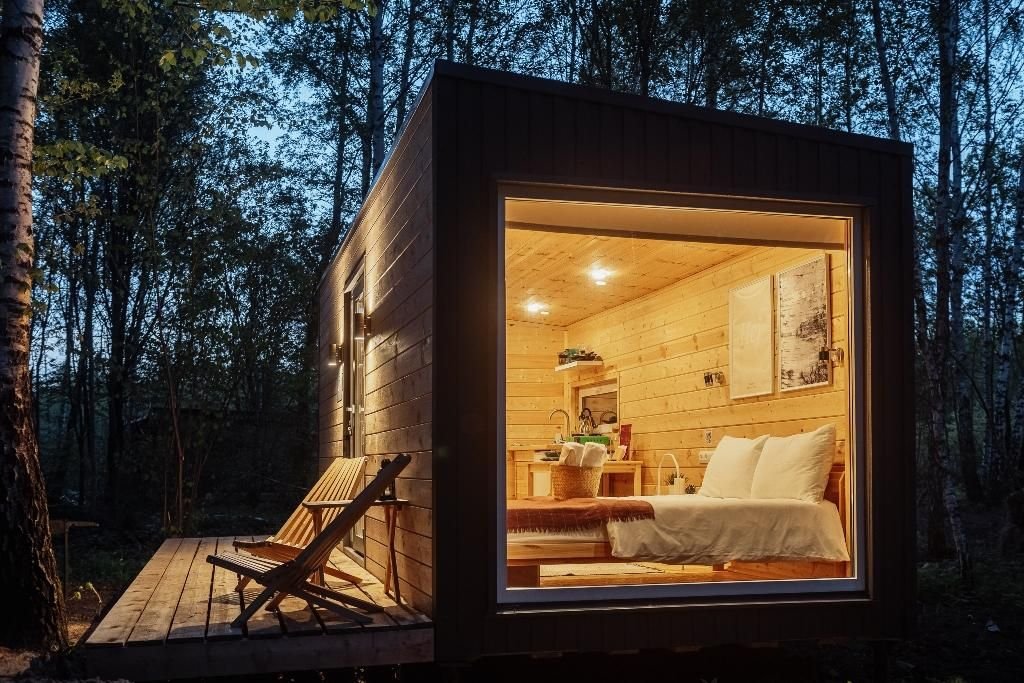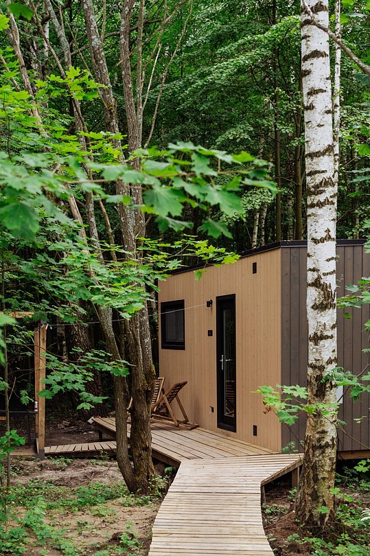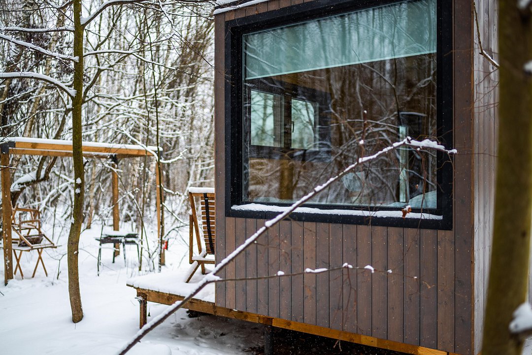 Глэмпинг «Терруар» предлагает уютные скандинавские домики для отдыха в живописном месте на границе Московской и Тульской областей.