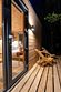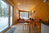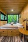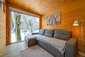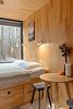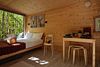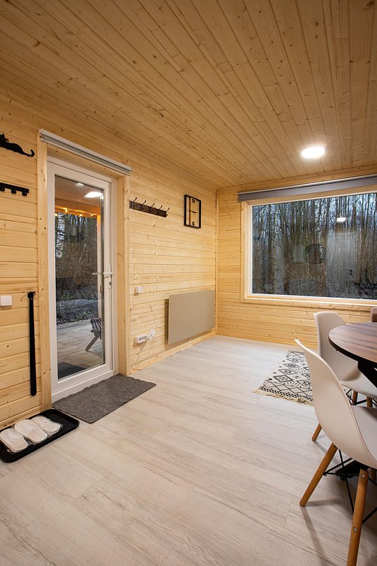 В доме на 4-х человек с большим панорамными окнами есть 2 комнаты: в одной из них находится двуспальная кровать, а в другой раздвижной диван, а также кухня, холодильник и санузел с душем, есть терраса с мебелью и все принадлежности для барбекю.