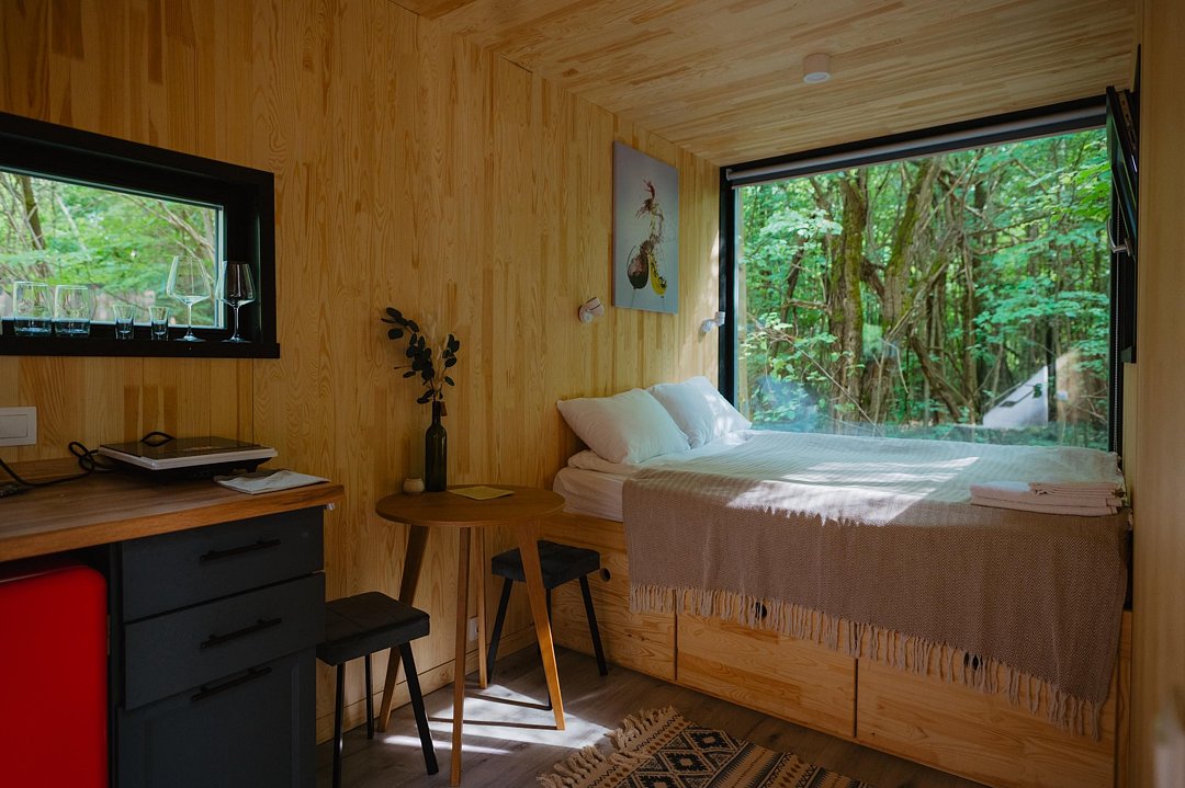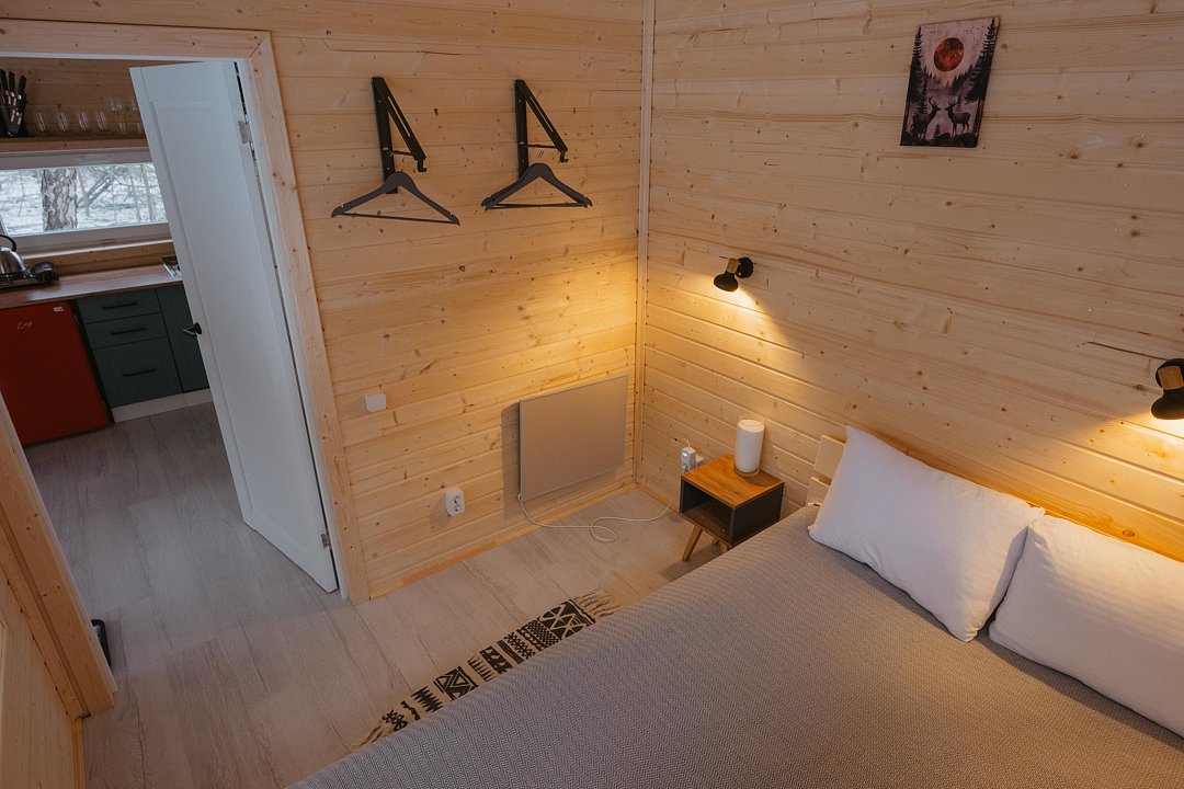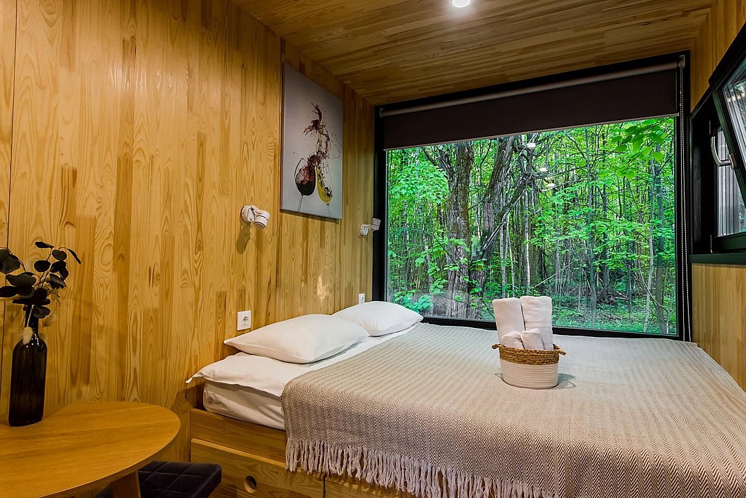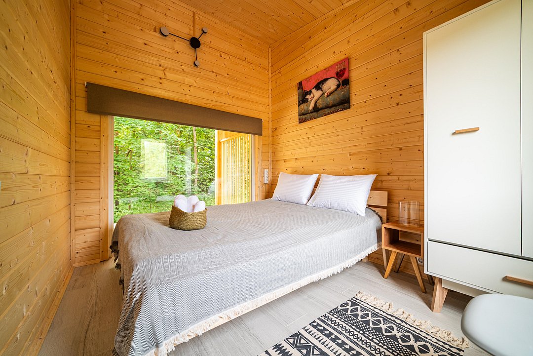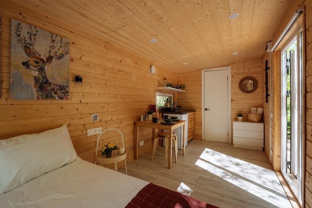 Домики расположены в окружении прекрасной природы, где гости могут насладиться тишиной и покоем. Каждый из них оборудован всем необходимым для комфортного проживания. Внутри гости найдут уютную спальню, гостиную, полностью оборудованную кухню и собственную ванную комнату. Рядом оборудована мангальная зона.