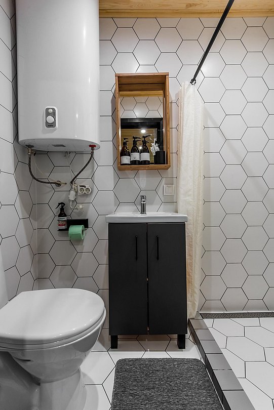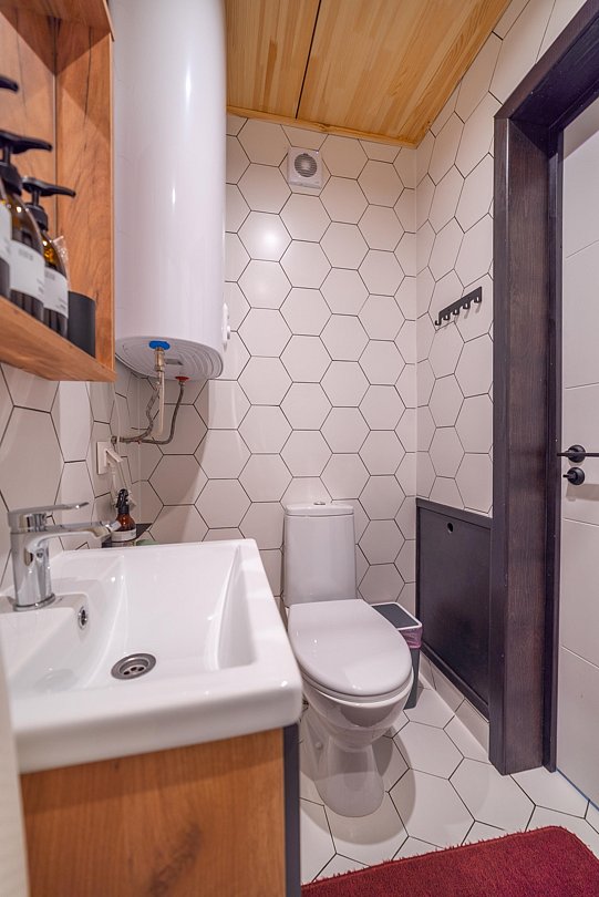 Санузел с душем, кухонная зона, мангальная зона, мини-холодильник