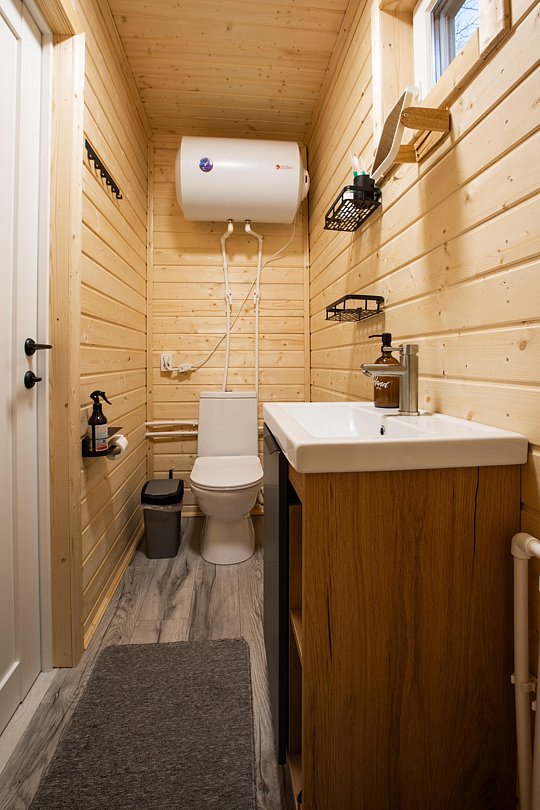 Баня c санузлом и душем. Дополнительно можно добавить горячую купель фурако и холодную купель. Целый СПА-комплекс.