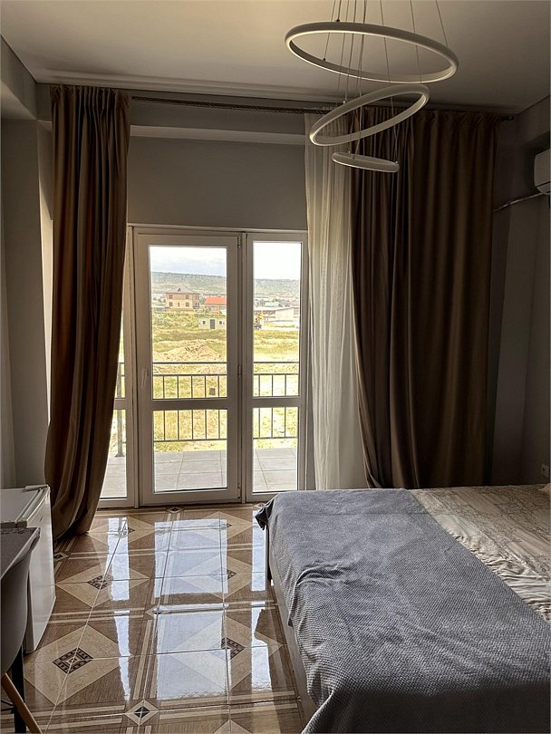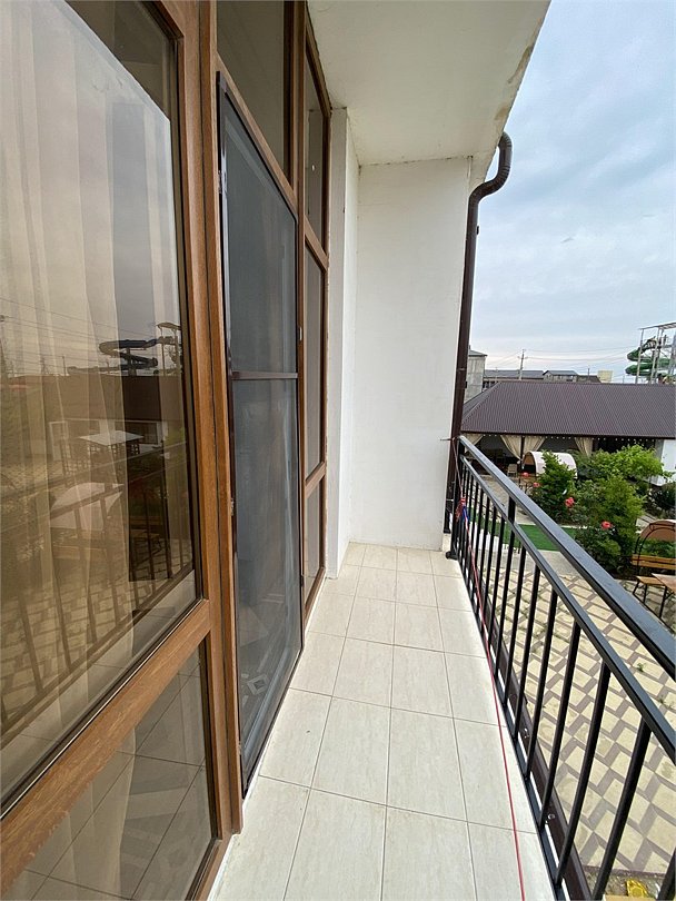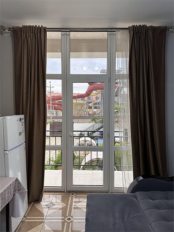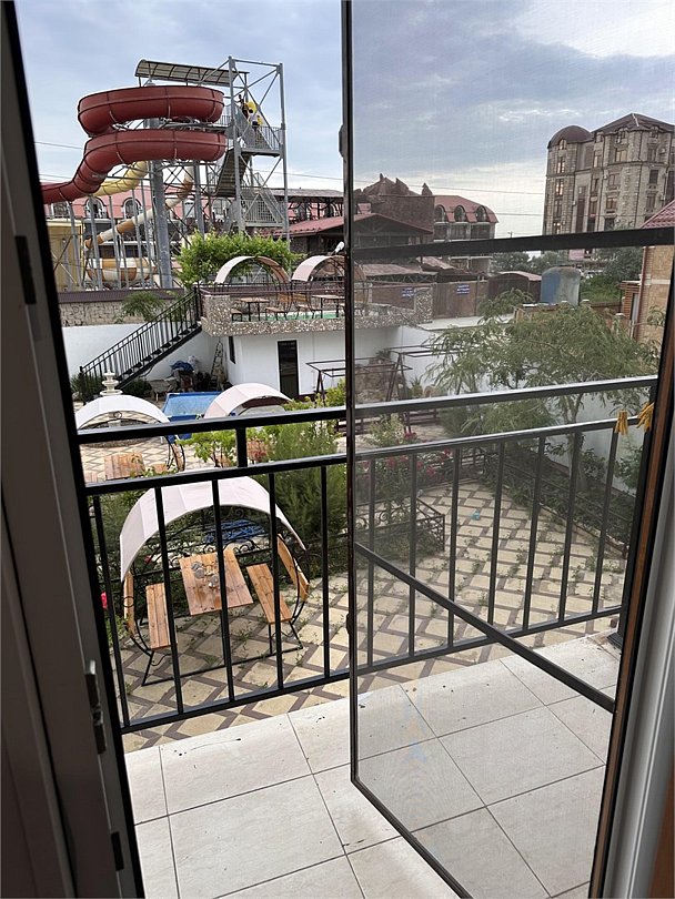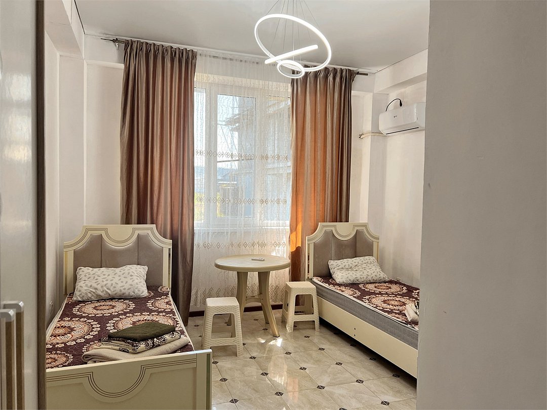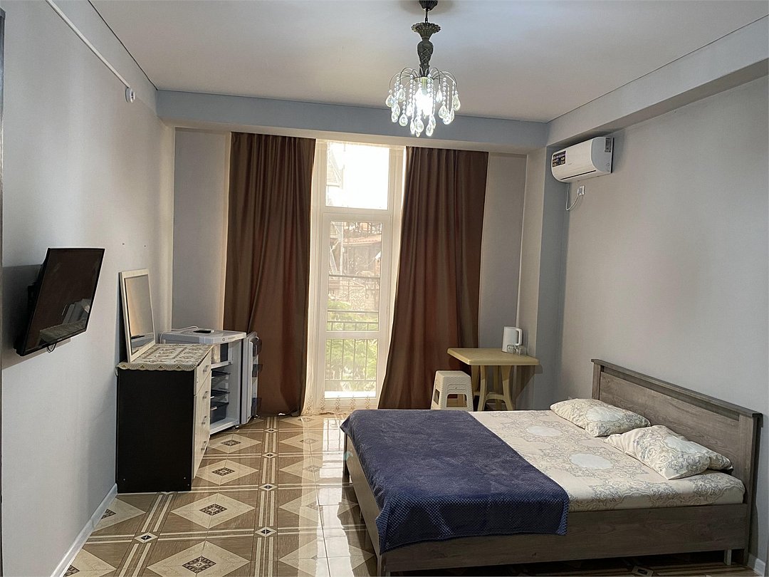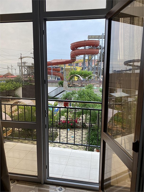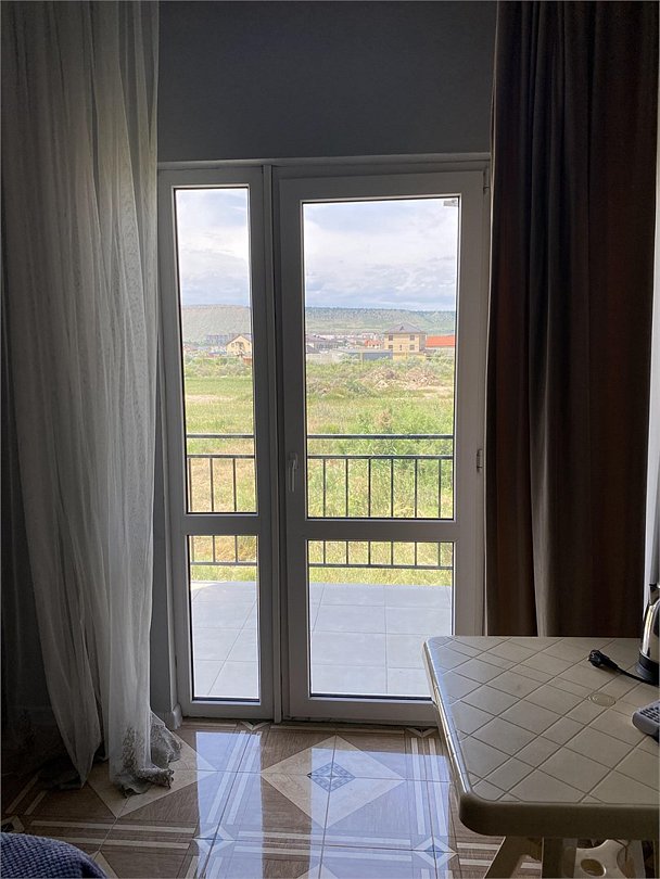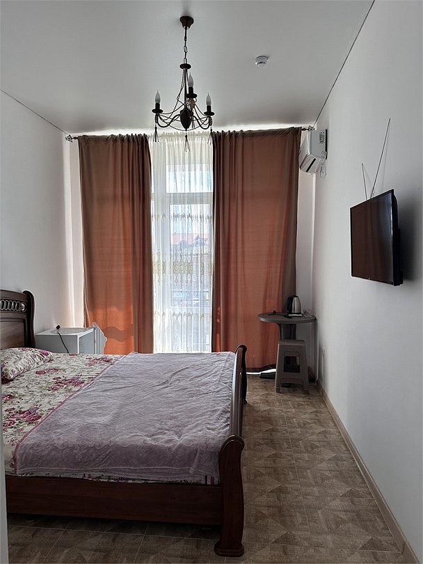отдельный вход в номер со двора,вид во двор панорамные окна ,все условия в номере душ ,санузел, сплит система ,мини холодильник , телевизор, электро чайник и стол!Услуги и удобства