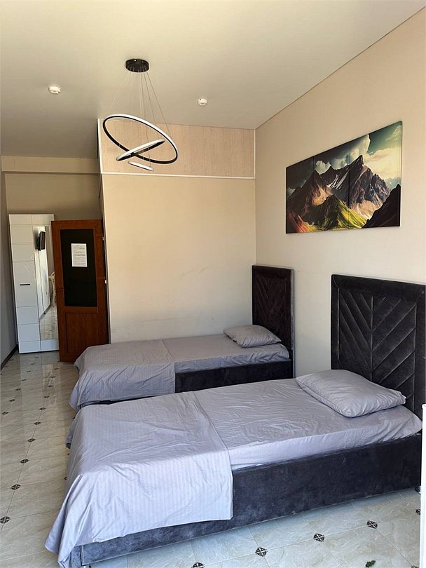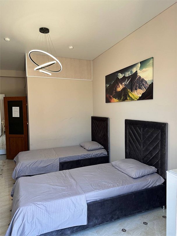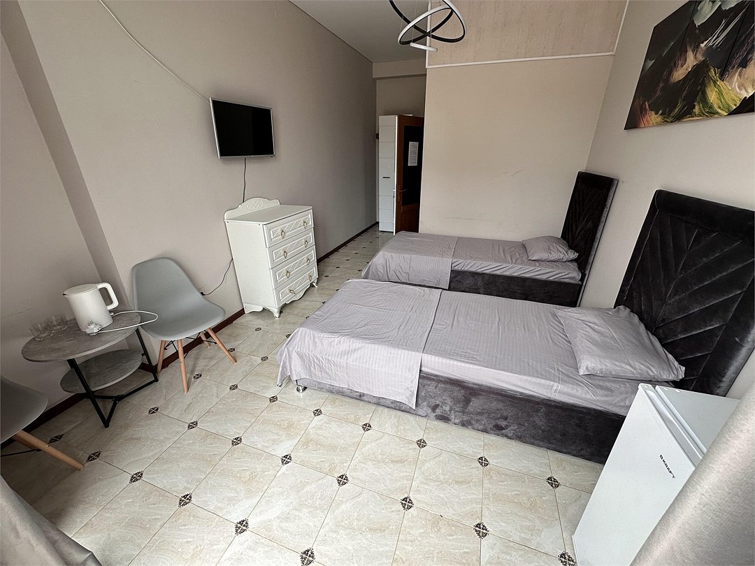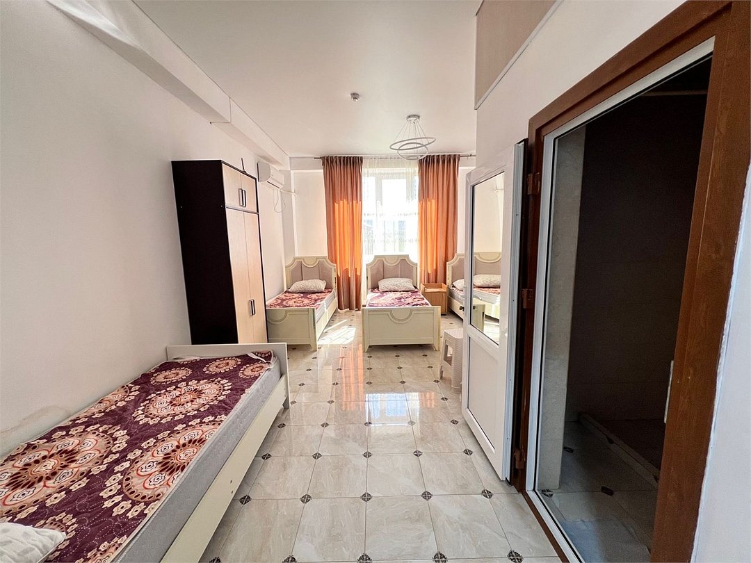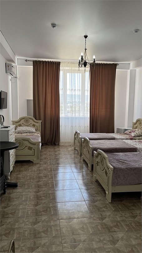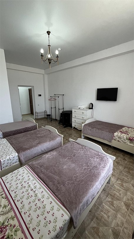 6 местнный номер,с двумя двуспальными кроватями,диваном,с окна идёт вид на горы.Услуги и удобства
