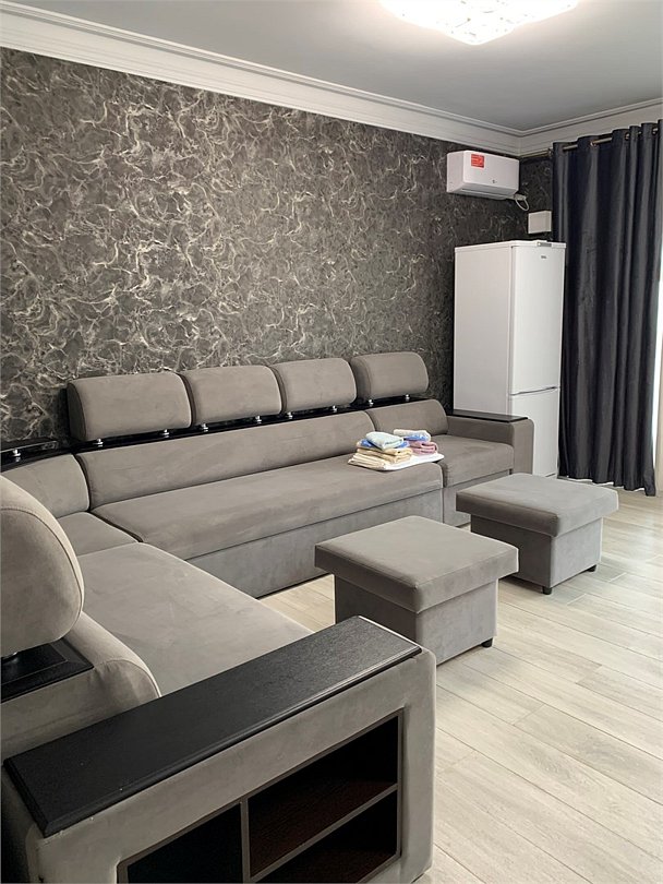 Wi-Fi, холодильник, кондиционер, фен, плита для приготовления пищи, теплый пол, тапочки, терраса, две односпальные или большая двуспальная кровать, стулья, вешалки, зеркало, две комнаты, унитаз, раковина, гостиная зона, душ, плиточное покрытие, вид во двор, стол, туалетные средства, туалет, мангал, диван-кровать, частичный вид на море, телевизор со Smart TV, теплые полы, два дивана-кровати, угловой диван-кровать, можно с питомцамиВ аппартаментах