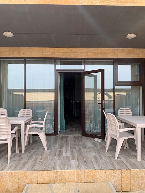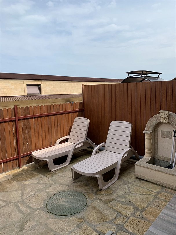 отличный номер с потрясающим видом на море без препятствий, во дворе имеется мангал, столы и стулья для больших компаний (до 8 человек), крытая терраса и шезлонги для загара.Услуги и удобства