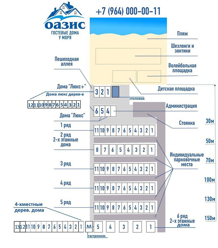 Находятся на 6 ряду, 160 метров от пляжаУслуги и удобства