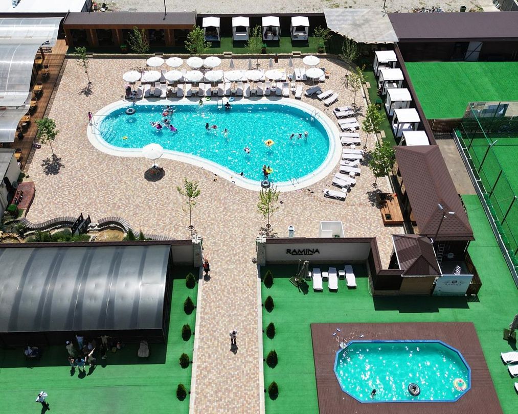 Путешествие с семьейЗамечательное поселение ДагестанаОтель замечательный, сейчас отдыхаем в нём и очень довольны. Номер 414.1 совмещенный с 414.2 (двухкомнатный 4-х местный сюпериор) на 2 этаже в 4 коттедже. В обеих комнатах, имеющих как отдельные входы, так и соединенных между собой общей межкомнатной дверью, имеются душевые (санузлы), кондиционеры, большие смарт телевизоры, чайники с набором чая и кофе, мини-холодильники, отдельные выходы на большой, разделенный посередине перилами, балкон, на котором по столу и паре стульев. В санузлах есть водонагреватели, электро-полотенцесушилки, жидкое мыло, гель для душа и неплохой шампунь. Также имеется сушилка для белья, что лично меня очень радует. Кровати - в одной комнате их 2 односпальные, во второй - одна двуспальная. Воду, и набор чай-кофе приносят ежедневно, также происходит влажная уборка номера и смена полотенец. Смена белья - раз в 4 дня. Номера полностью обустроенные и комфортные для проживания. При заселении не было прикроватных тумб, о чём я написала в опроснике, который пришёл на электронную почту по поводу первого дня проживания, и на следующий день тумбы были в номере. Очень приятно за быструю реакцию и клиентоориентированность администрации отеля и лично Амине. Территория отеля просто шикарная, для семей с детками это находка, поскольку есть надувные горки - аквапарк, подростковый и малышковый бассейны, также есть и отдельно взрослый бассейн, с шезлонгами и зонтами по кругу. Много зон для деток, большая детская площадка. Кроме того, с детьми заниматься аниматоры. Кругом чистота, много лавочек, качели и т.д. Поразил обслуживающий персонал отеля, они работают без выходных и начиная с раннего утра и до позднего вечера всё то моют, то метут. По завтракам, которые проходят с 8 до 10 часов на открытой террасе - разнообразия ежедневного особо нет, но блины, сырники, яичница с овощами, омлет с овощами, картошка, сосиски, яйцо вкрутую, каши, йогурты, кефиры, соки, сухие завтраки, овощи, сыр, колбаса и фрукты (виноград, яблоки, бананы, мандарины) всегда были, и голодными мы ни разу не ушли. Территория отеля охраняется и вход строго по пропуску, у входа всегда дежурит охранник, а то и 2 сразу. На самой территории отеля есть ресторан Дастархан, но мы в него не ходили, поэтому ничего сказать не могу, а за территорией - справа от входа в отель, расположен мини магазинчик, в котором можно купить, какие-то продукты и необходимые товары (кепки, крем от загара, освежитель, детские товары) - в нём есть вкусное местное мороженое "Даканца". Ниже по дороге к пляжу, метрах в 50 отель Омега, в котором хорошая недорогая столовая, с довольно вкусными блюдами, где мы и обедали каждый день. Далее, пляж от Рамины, расположен метрах в 250, слева камни, а чуть правее пологий песчаный вход в море. Также на пляже для отдыхающих из отеля Рамина есть бесплатные шезлонги и стационарные зонтики. Раздевалки есть, а вот туалеты отсутствуют, поэтому учитывайте этот момент, так как до отеля ещё надо успеть добраться в случае экстренной необходимости ;). Само море не всегда прозрачное, поскольку несмотря на наличие 2-х волнорезов, волны всё же есть. Пару дней нам повезло и море было прозрачное и почти без волн, рыбки плавали даже у берега. В целом вроде все моменты отразила, и несмотря на значительное количество отрицательных отзывов по данному отелю, 