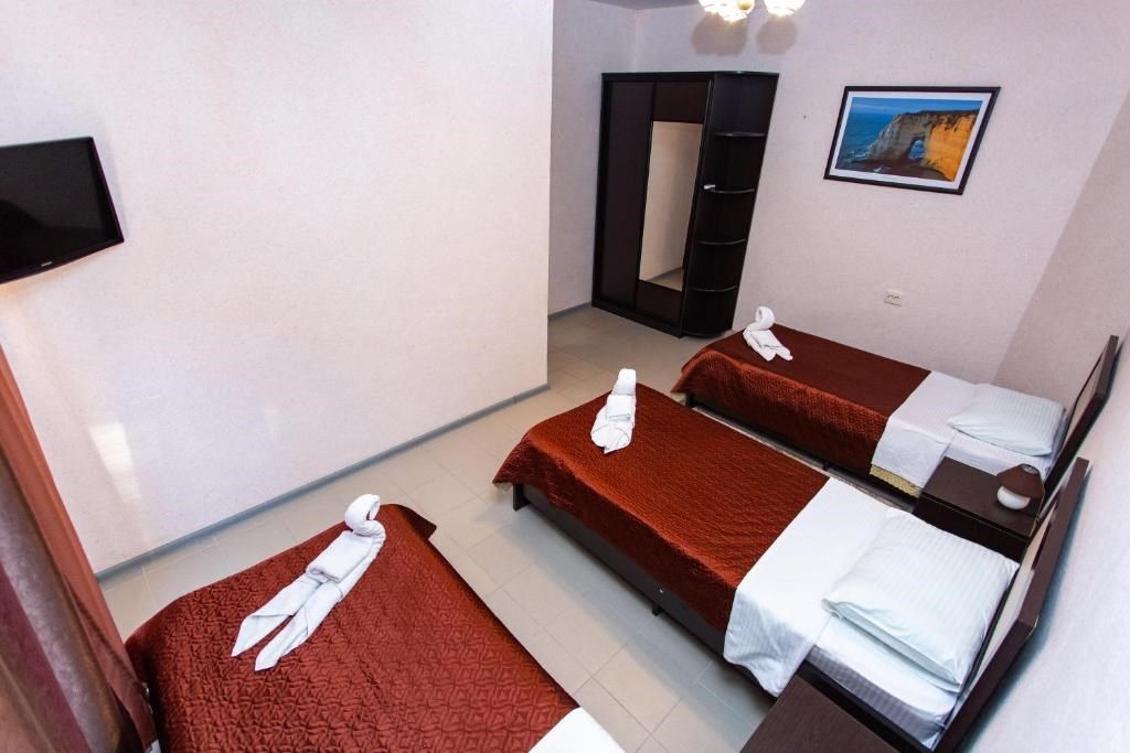 Этот номер – отличный выбор для компании друзей или семьи с подростками, которые ценят удобство и разумные траты. Здесь размещены три полноценные односпальные кровати, чтобы каждому было комфортно отдыхать после насыщенного дня на пляже или экскурсионных поездок по Дагестану. Ваш собственный санузел с душевой кабиной, раковиной и туалетом находится буквально в нескольких шагах от номера на этаже. Мы уже подготовили для вас всё необходимое: фен, полотенца и базовые косметические принадлежности. В номере работает кондиционер, чтобы сохранить приятную прохладу даже в самые жаркие дни. Есть электрический чайник с чашками для уютных вечеров и небольшой холодильник для хранения напитков и фруктов. Сушилка поможет быстро привести в порядок пляжные вещи. Окна выходят во внутренний двор, где тишина и спокойствие подарят полноценный отдых. Все гости нашего отеля могут свободно пользоваться бассейнами, аквапарком и участвовать в анимационной программе. До песчаного пляжа Каспийского моря – всего несколько минут прогулки.Услуги и удобства