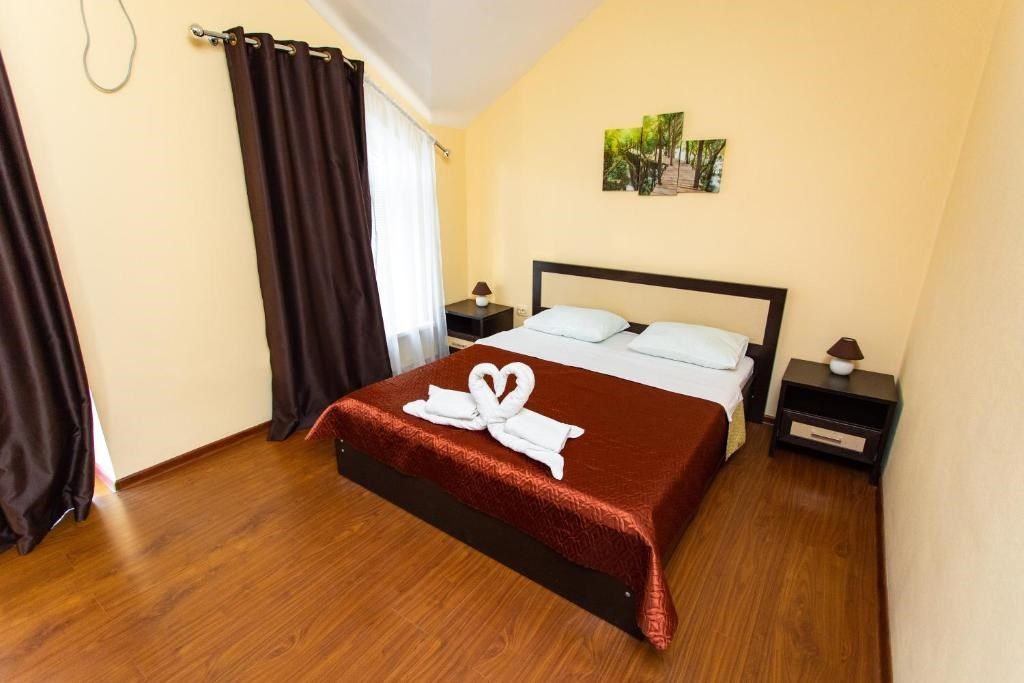 Трехэтажные апартаменты номера организованные по типу современной квартиры, с 2 спальнями (2 раздельные односпальные кровати и двуспальная кровать 1600*2000) гостиной (раскладной диван), кухней.