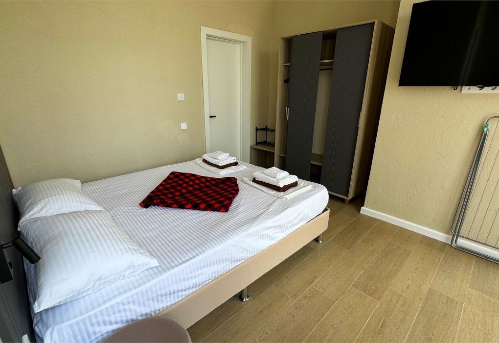 Двухместный номер оборудован двуспальной кроватью.