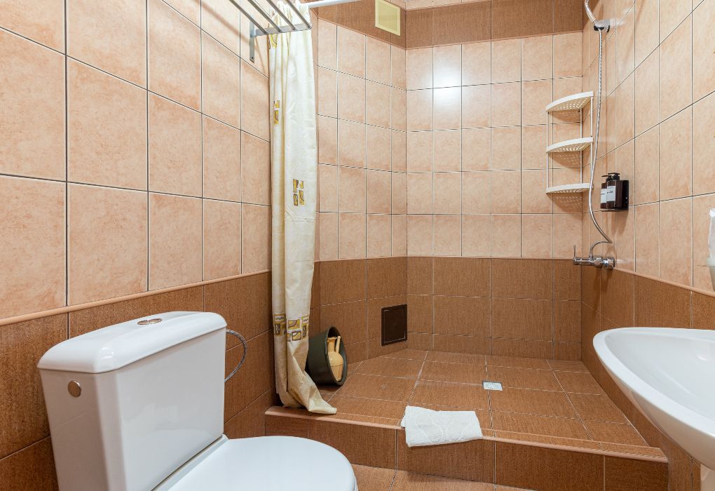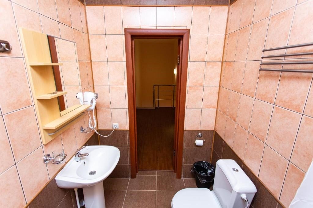 Номер оборудован санузлом с душевой системой, раковиной и туалетом в номере или на лестничном пролете.