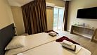 Просторный и светлый номер идеально подойдёт для семейного отдыха или размещения небольшой компании. Две полноценные спальни, современный интерьер после недавней реновации и продуманная планировка создают ощущение уюта и свободы. Номер состоит из двух отдельных спален: в одной установлена двуспальная кровать, в другой – две односпальные кровати. Каждая спальня оборудована своим санузлом с душевой кабиной, туалетом и раковиной, что особенно удобно для отдыха с детьми или друзьями. К услугам гостей кондиционер, пустой мини-бар для хранения личных напитков и закусок, электрический чайник с чашками, а также фен, полотенца и базовые косметические принадлежности. Приятным дополнением станет собственный балкон с видом на бассейн – идеальное место для утреннего кофе или отдыха после насыщенного дня на море. Все гости нашего отеля могут свободно пользоваться бассейнами, аквапарком и участвовать в анимационной программе. До песчаного пляжа Каспийского моря – всего несколько минут пешком.Услуги и удобства