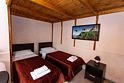Четырехместный номер оборудован двуспальной кроватью (180*200см) и двухуровневой детской кроватью (70*180см).
