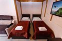 Двухкомнатные четырёхместные номера оборудованы четырьмя односпальными кроватями (800 х 200 см) или двумя двуспальными кроватями (160 х 200 см).
