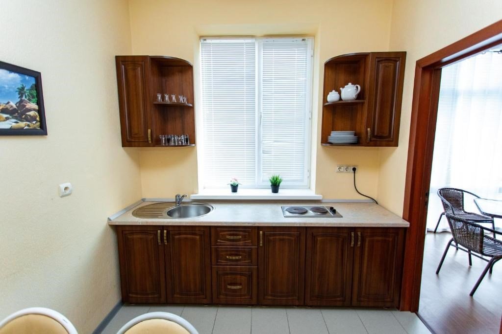 телевизор, Wi-Fi, холодильник, кондиционер, плита для приготовления пищи, душевая кабина, пляжные полотенца, тапочки, сауна, двуспальная кровать, диван, шкаф для одежды, вешалки, обеденный стол, барная стойка, набор посуды, обслуживание номеров, чайник, унитаз, раковина, мягкая мебель, вид во двор, стул, сушилка для белья, мини-кухня, онлайн-регистрация до заезда, угловой диван-кровать, без питомцевВ гостиничном номере