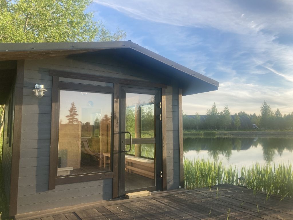 Рядом с коттеджем можно прогуляться. На территории несколько озёр с обустроенными пляжами.