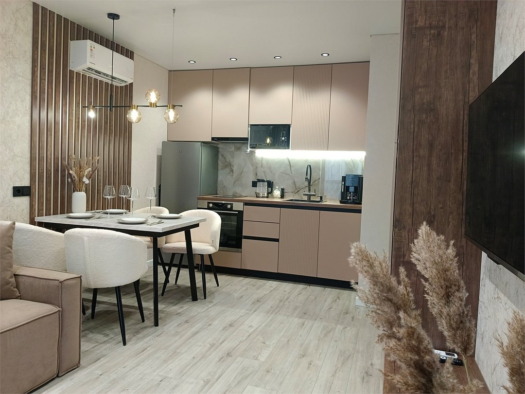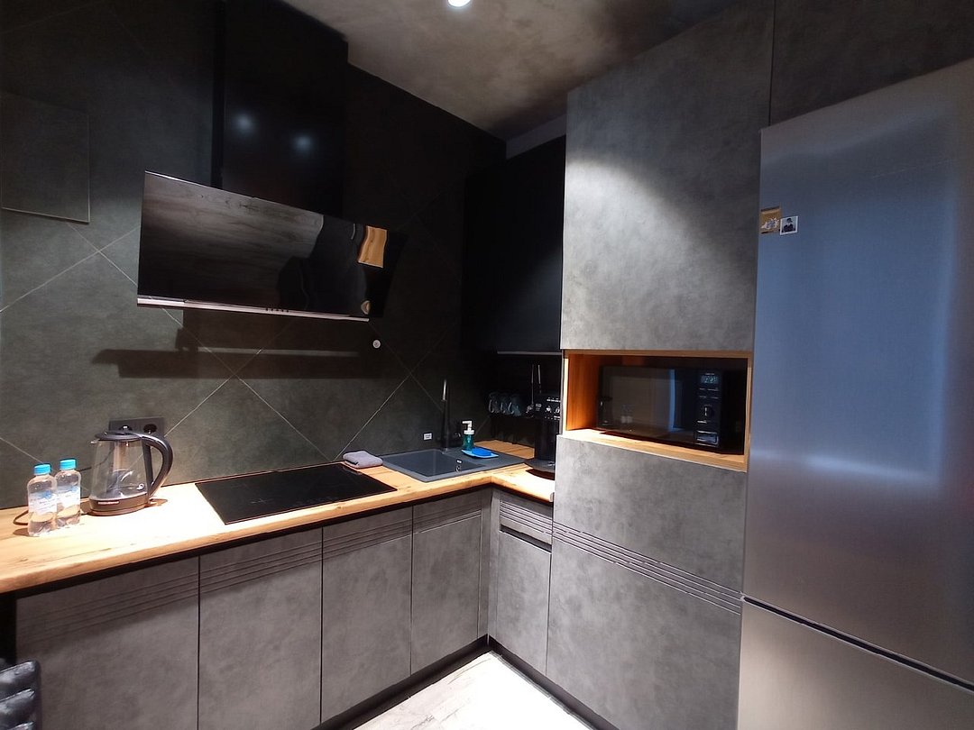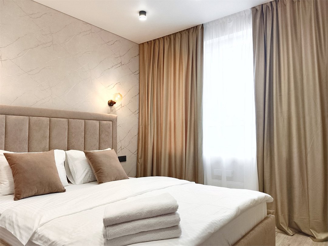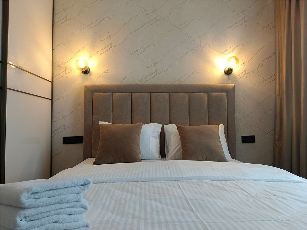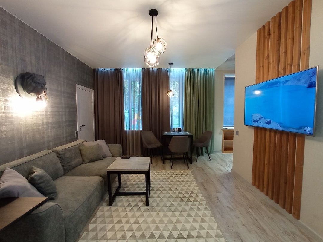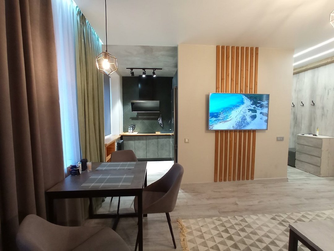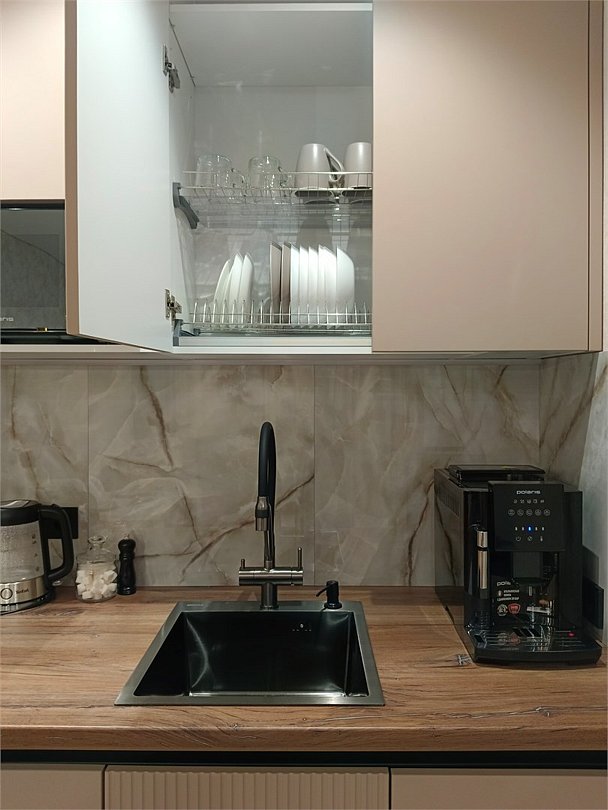Апартаменты Мodern style - это 3 комнатная квартира с 2мя спальными комнатами и одной кухней-гостинной. В каждой спальной - двуспальная кровать с ортопедическим матрасом. Диван в гостинной раскладывается до размеров двуспальной кровати. Кухня оборудована всей необходимой бытовой техникой ( электроплита, вытяжка, холодильник, чайник, посудомоечная машина, тостер, микроволновая печь и фильтр с питьевой водой. Приятным дополнением станет кофейный автомат с зерновым кофе и горячим шоколадом. В сан. узле теплый пол, фен и все необходимые гигиенические средства. Удаленное заселение позволит Вам заселиться в любое удобное для Вас время.Услуги и удобства