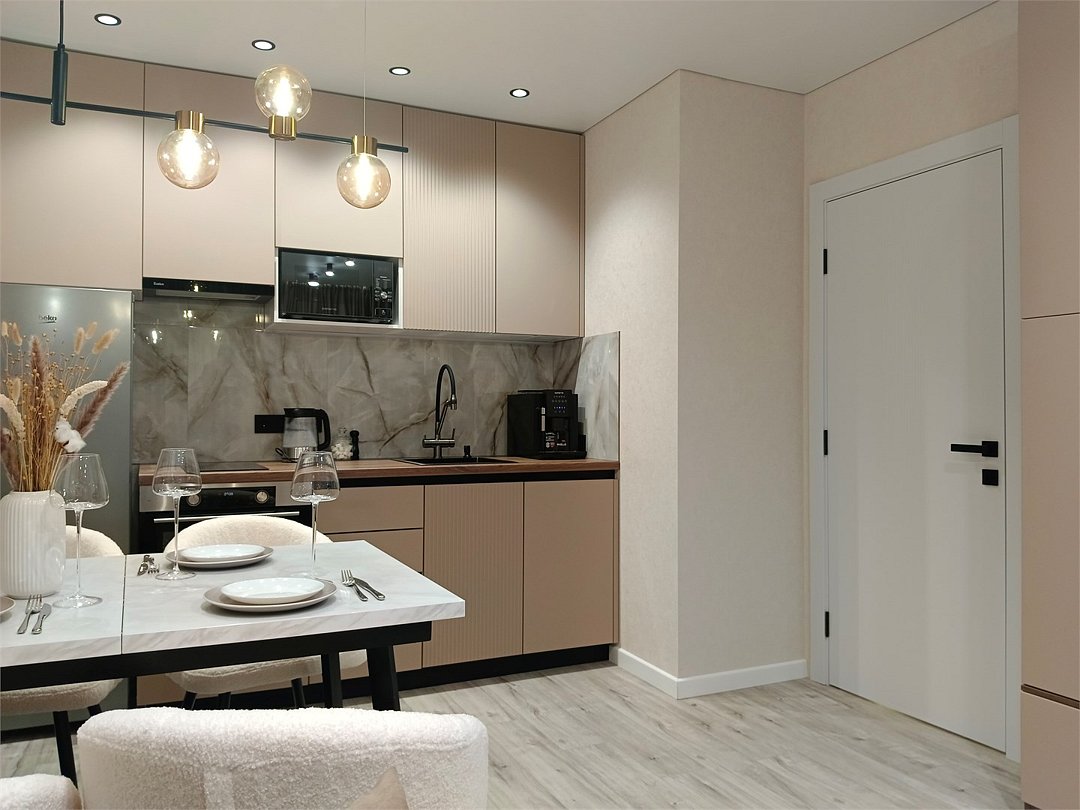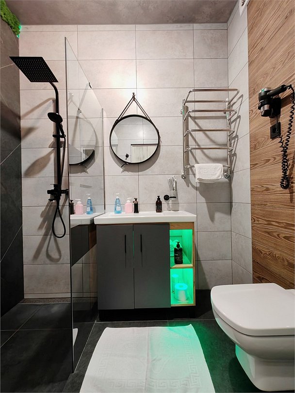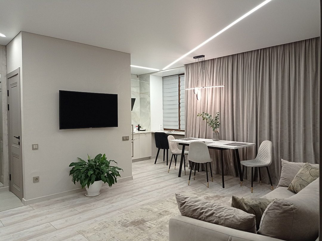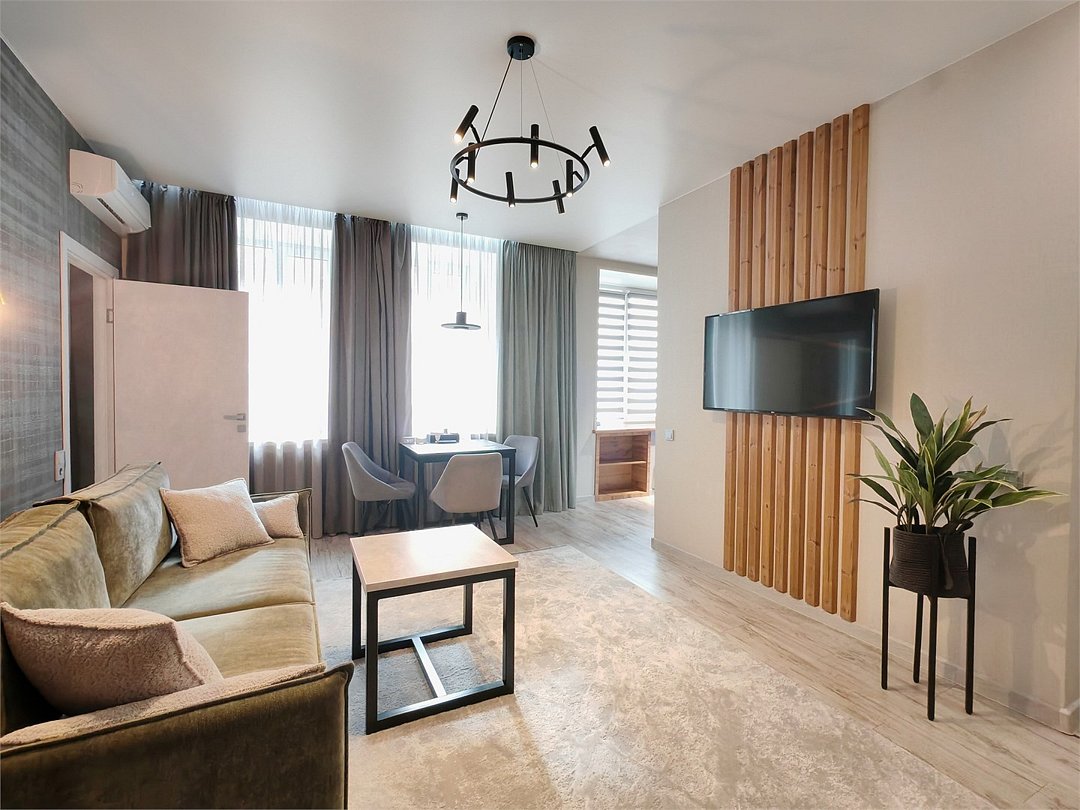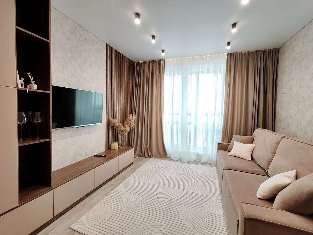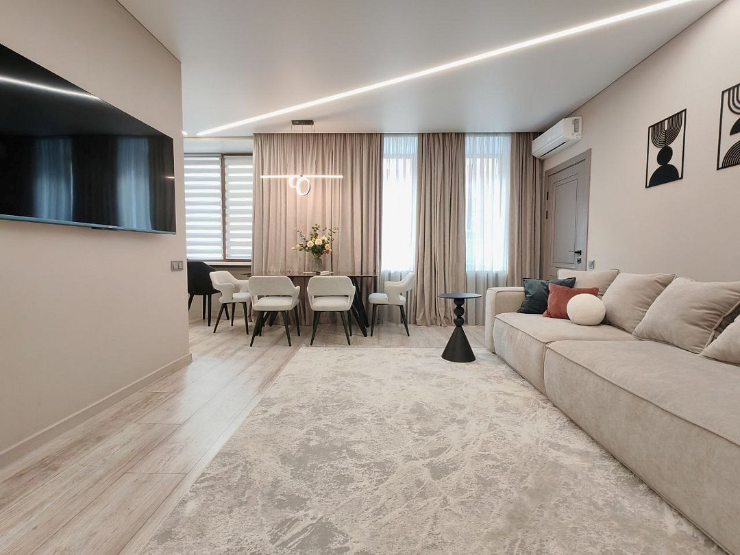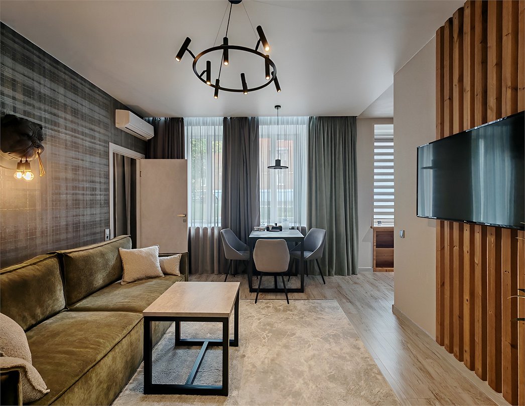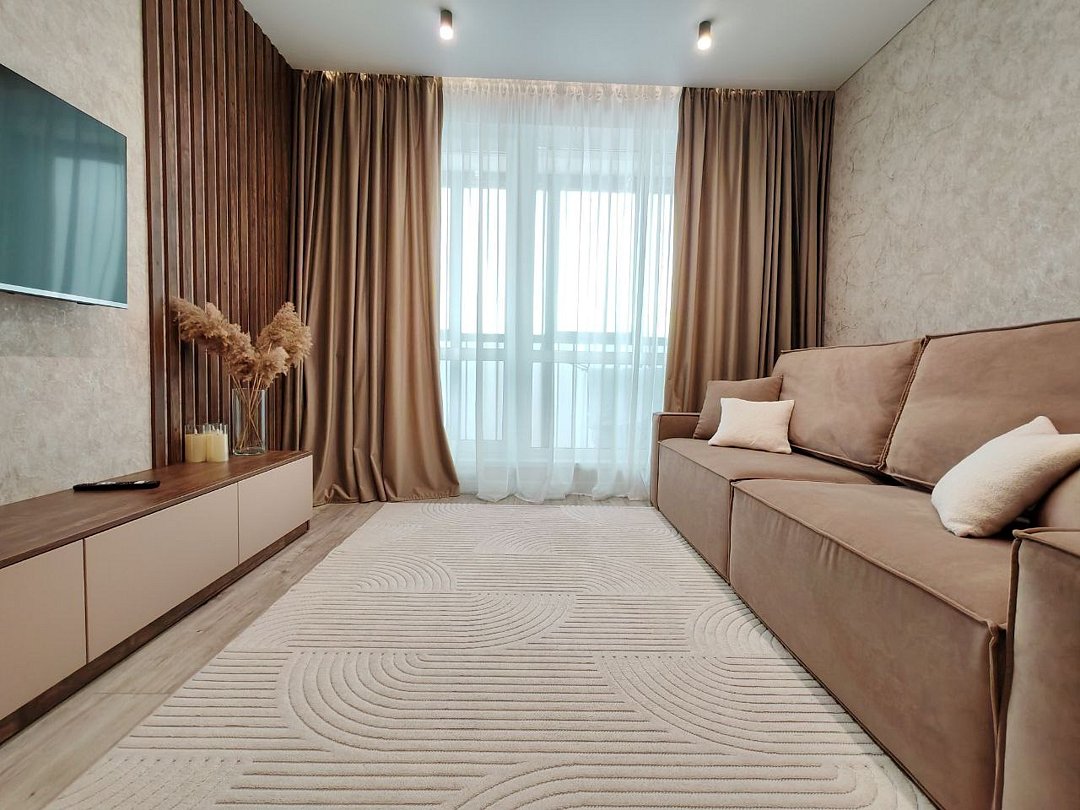 Апартаменты Мodern style - это 3 комнатная квартира с 2мя спальными комнатами и одной кухней-гостинной. В каждой спальной - двуспальная кровать с ортопедическим матрасом. Диван в гостинной раскладывается до размеров двуспальной кровати. Кухня оборудована всей необходимой бытовой техникой ( электроплита, вытяжка, холодильник, чайник, посудомоечная машина, тостер, микроволновая печь и фильтр с питьевой водой. Приятным дополнением станет кофейный автомат с зерновым кофе и горячим шоколадом. В сан. узле теплый пол, фен и все необходимые гигиенические средства. Удаленное заселение позволит Вам заселиться в любое удобное для Вас время.Услуги и удобства