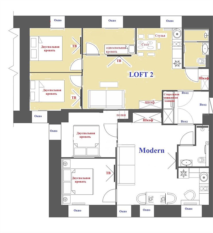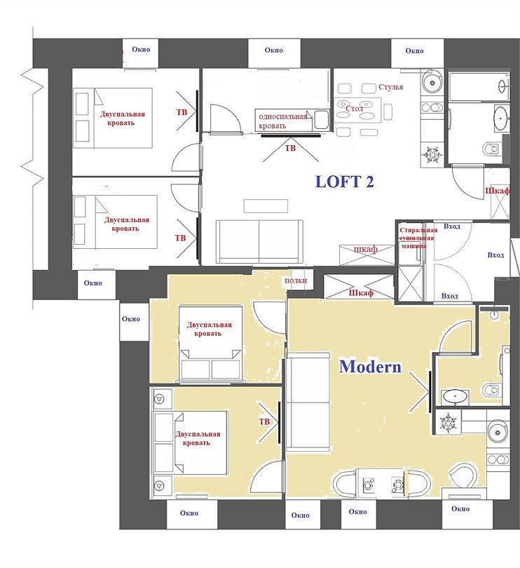 42 м2 · 4-х местный апартаменты + 1 доп. место