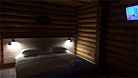 Уютный 2-местный номер в деревянном домике. При необходимости комплектуется дополнительным детским местом (раскладушка с матрацем + постельное белье). В номере есть горячая вода, душевая кабина, унитаз, раковина, гель и шампунь для душа, а также прочие принадлежности. Есть небольшой стол, стулья, чайник с комплектом посуды, мини-холодильник, микроволновая печь. LED-телевизор + 20 цифровых каналов. На окнах имеется антимоскитная сетка. На улице у номера установлен мангал, стол со скамейками и индивидуальное освещение площадки. В номере имеется отопление. Есть бесплатный Wi-Fi. Один домик состоит из двух номеров с раздельными входами.Услуги и удобства