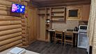 Уютный 2-местный номер в деревянном домике. Главное его отличие от номера "Стандарт" - это наличие кухонных принадлежностей и плитки для приготовления пищи. При необходимости комплектуется дополнительным детским местом (раскладушка с матрацем + постельное белье). В номере есть горячая вода, душевая кабина, унитаз, раковина, гель и шампунь для душа, а также прочие принадлежности. Есть небольшой стол, стулья, чайник с комплектом посуды, мини-холодильник, микроволновая печь, индукционная плитка. Комплект посуды для приготовления пищи (кастрюля, сковородка, сотейник). LED-телевизор + 20 цифровых каналов. На окнах имеется антимоскитная сетка. На улице у номера установлен мангал, стол со скамейками и индивидуальное освещение площадки. В номере имеется отопление. Есть бесплатный Wi-Fi. Один домик состоит из двух номеров с раздельными входами.Услуги и удобства