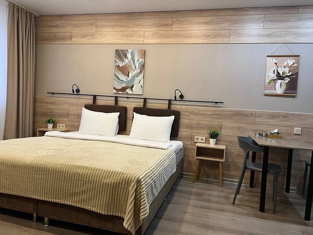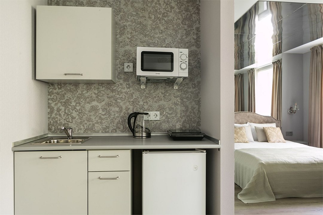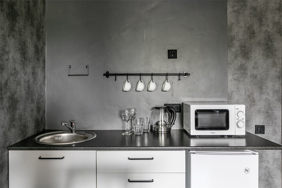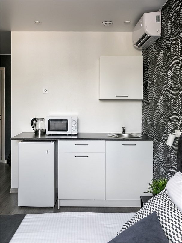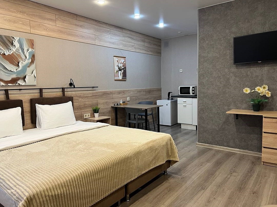 Комфортабельный номер идеально подходит для отдыха и работы. В номере двуспальная кровать, мини-кухня, все необходимое для приготовления пищи, ванная комната с душевой кабиной, принадлежностями. Для удобства гостей предусмотрена рабочая зона с столом и креслами.Услуги и удобства