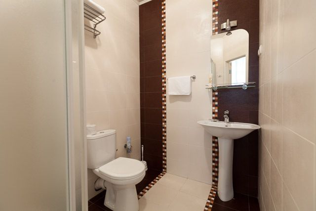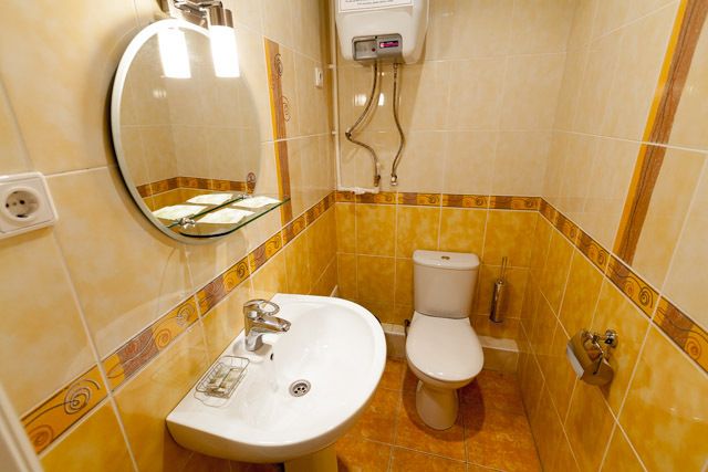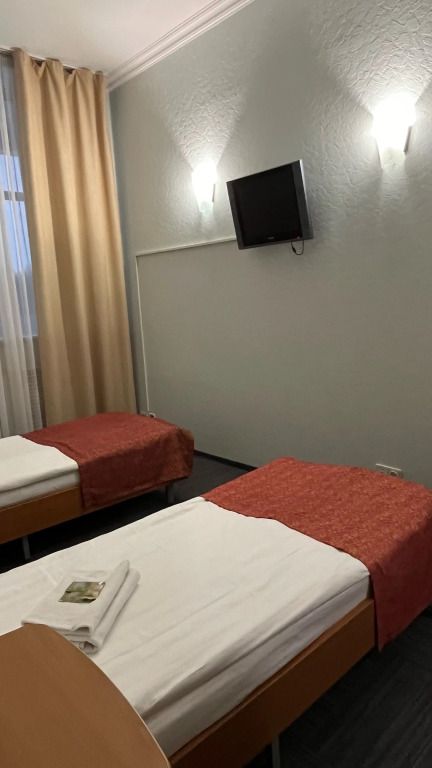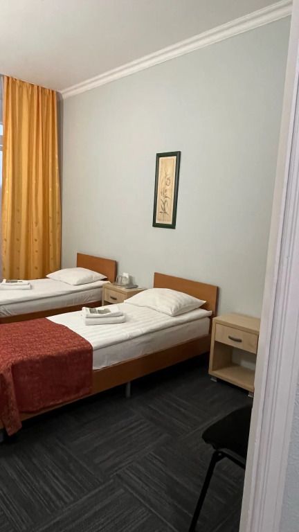 Количество комнат – 1. Две односпальные кровати, шкаф, тумба Телевизор, телефон. Санузел (один на 2 номера): душевая кабина (душевая комната одна на 2 номера), унитаз, умывальник.Услуги и удобства