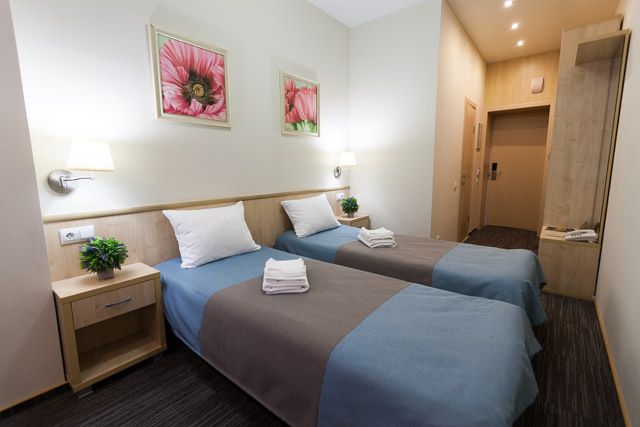 Площадь номера 17 кв.м., ковровое покрытие, две раздельные кровати шириной 80 см., рабочий стол, два мягких стула гардеробная, прикроватные тумбы, ЖК-телевизор, телефон, кондиционер, балкона нет. Санузел: душевая кабина, раковина, унитаз, гигиенический душ, туалетные принадлежности, комплект полотенец. Номер предназначен для некурящих. Номер оборудован бесконтактным электронным ключом. Максимальное количество гостей - 2 человека. Количество комнат – 1. Две односпальные кровати. ЖК TV, телефон, кондиционер. Санузел: душевая кабина, унитаз, умывальник, гигиенический душ.Услуги и удобства