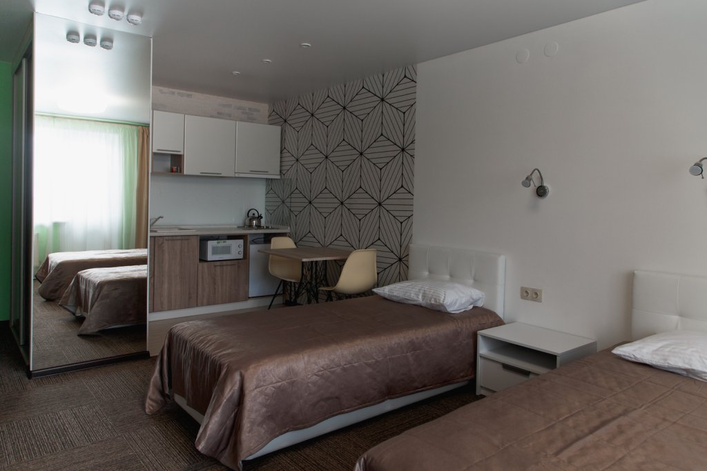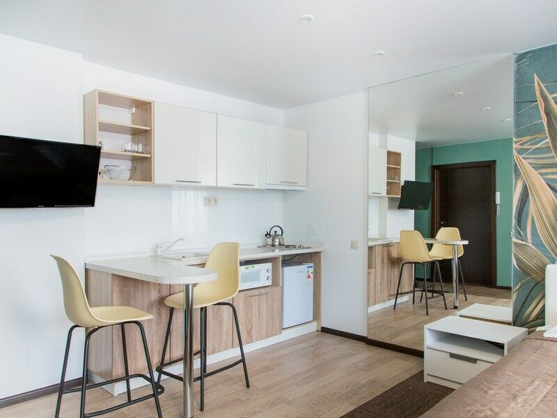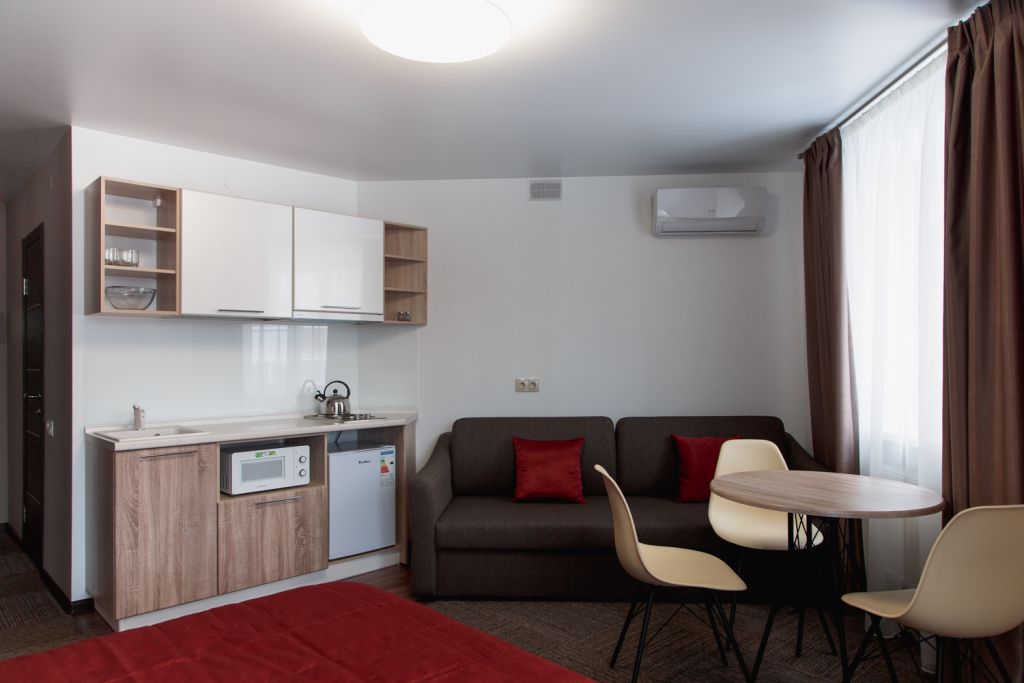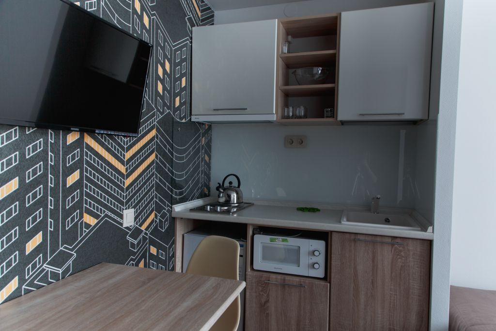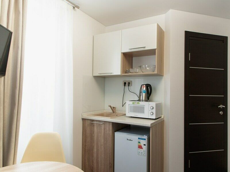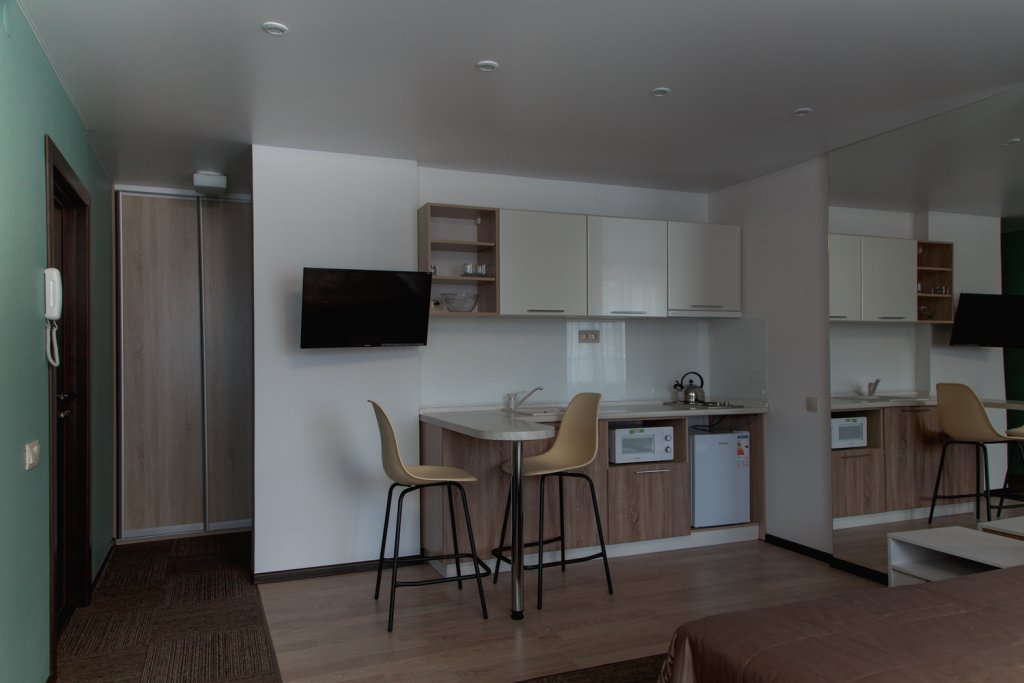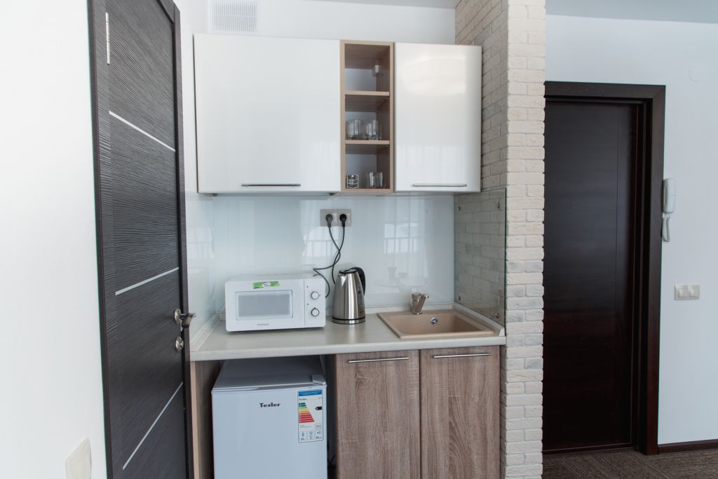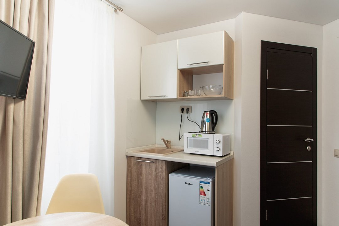 Мини-кухня в каждом номере (варочные поверхности или микроволновка в описание номера).