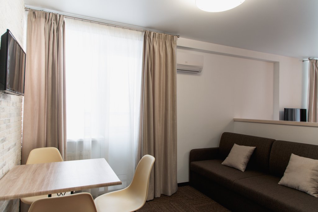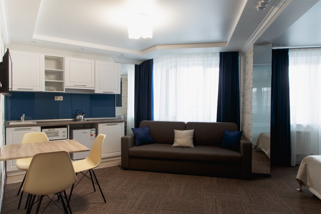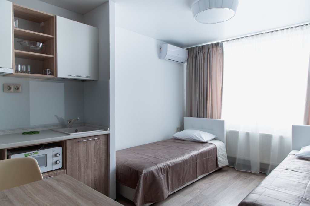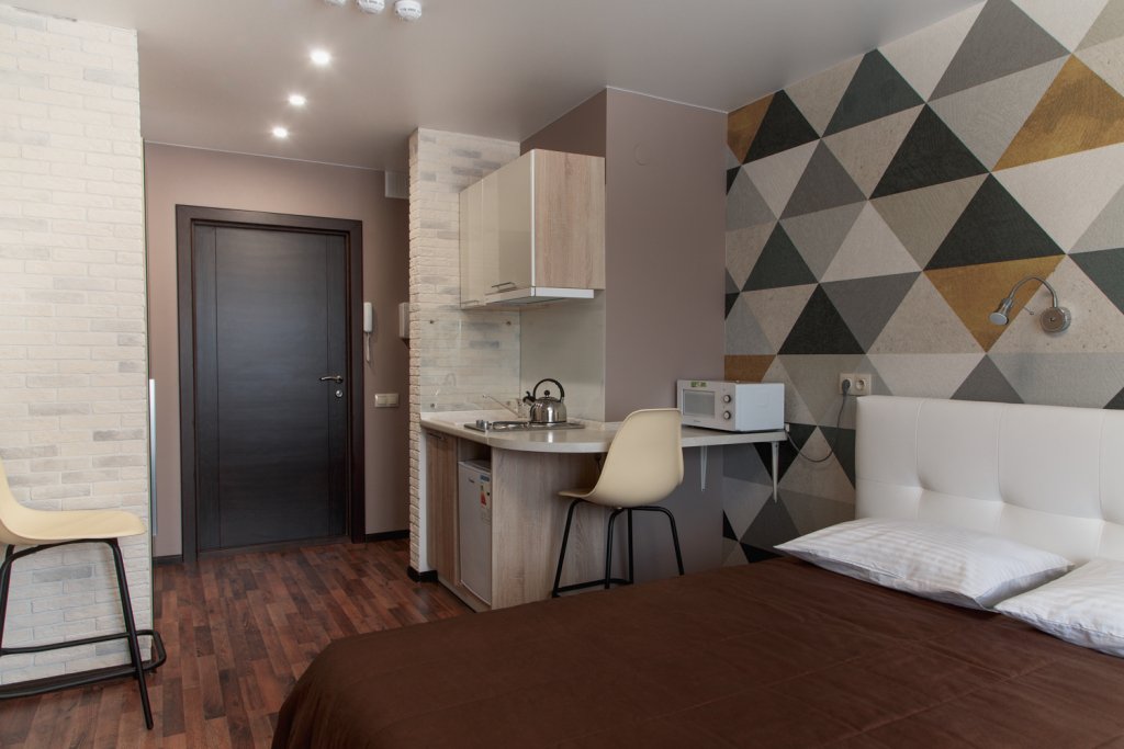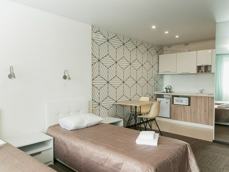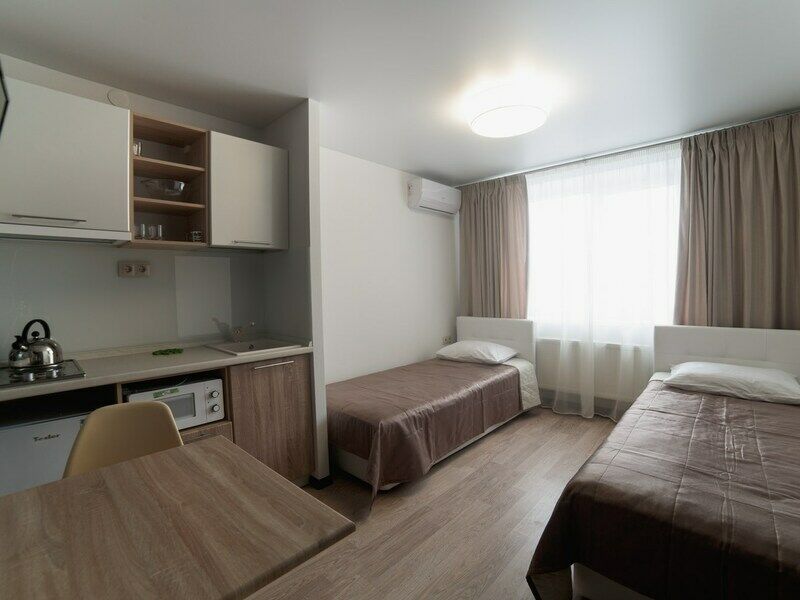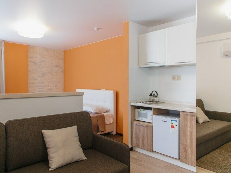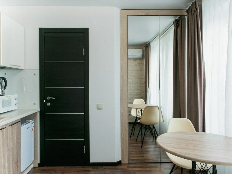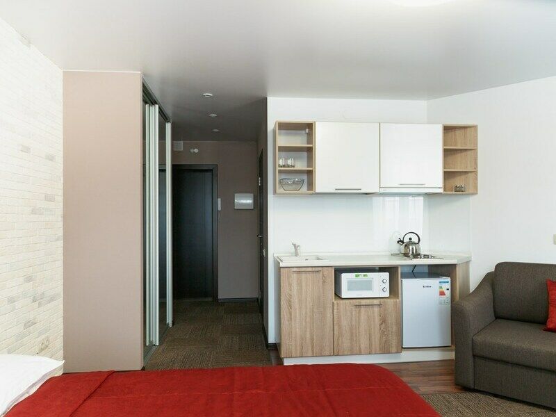 Мини-кухня в каждом номере (варочные поверхности или микроволновка в описание номера).