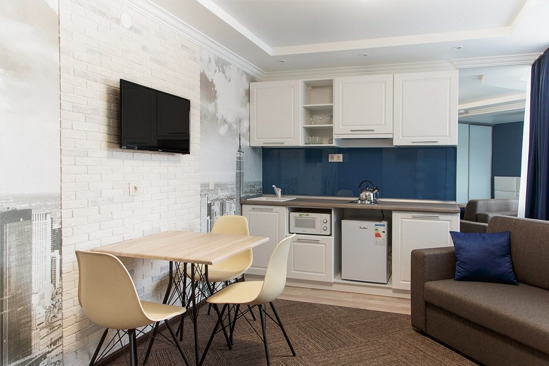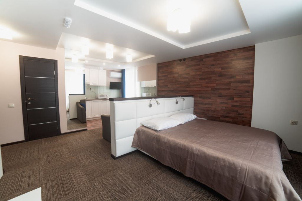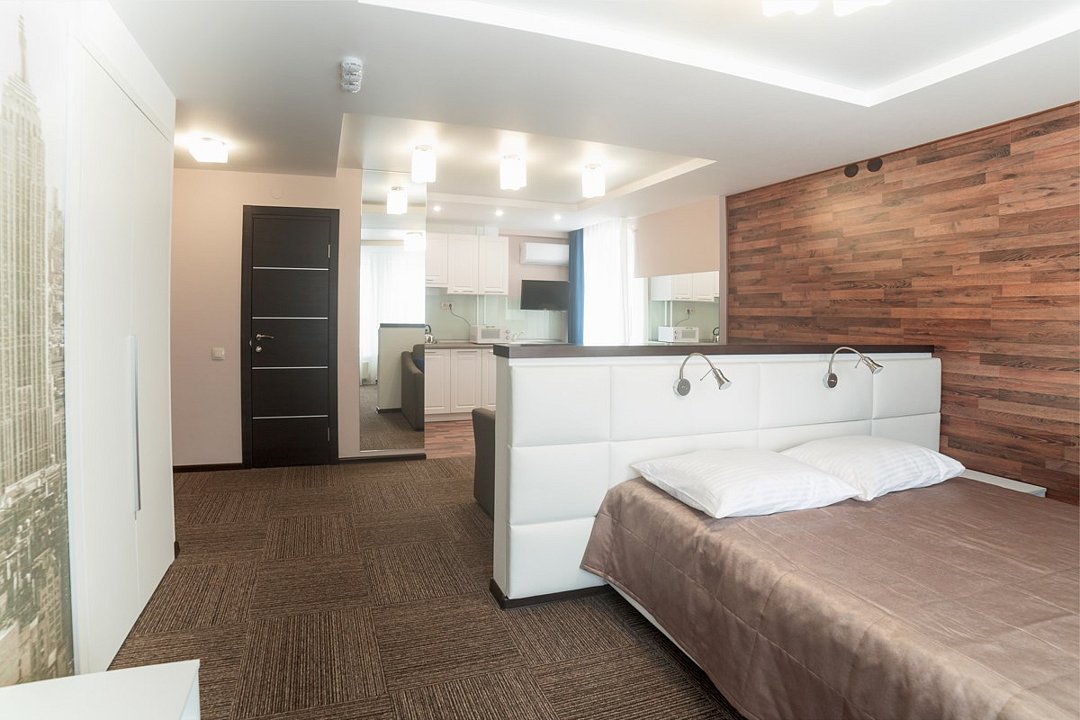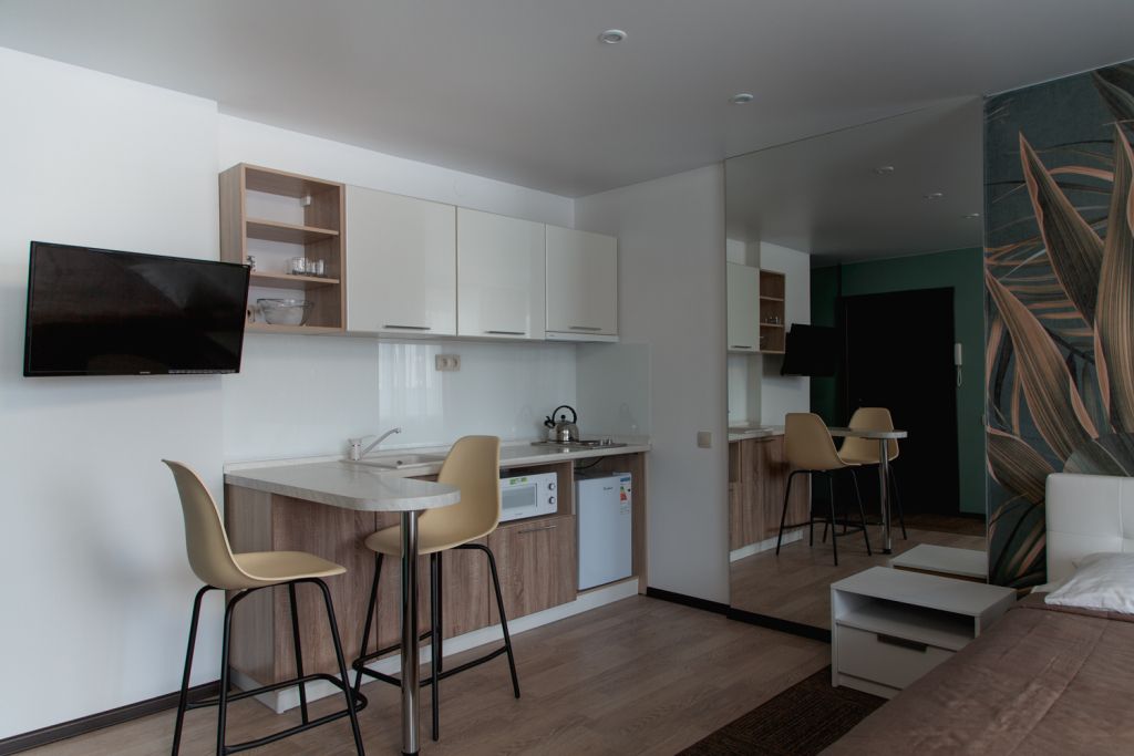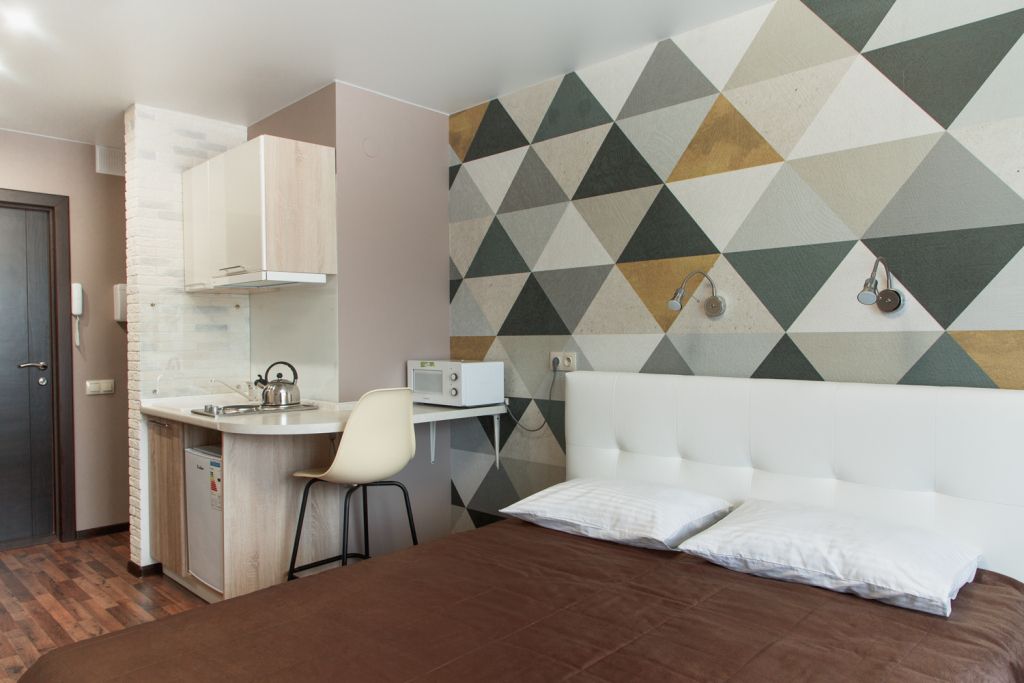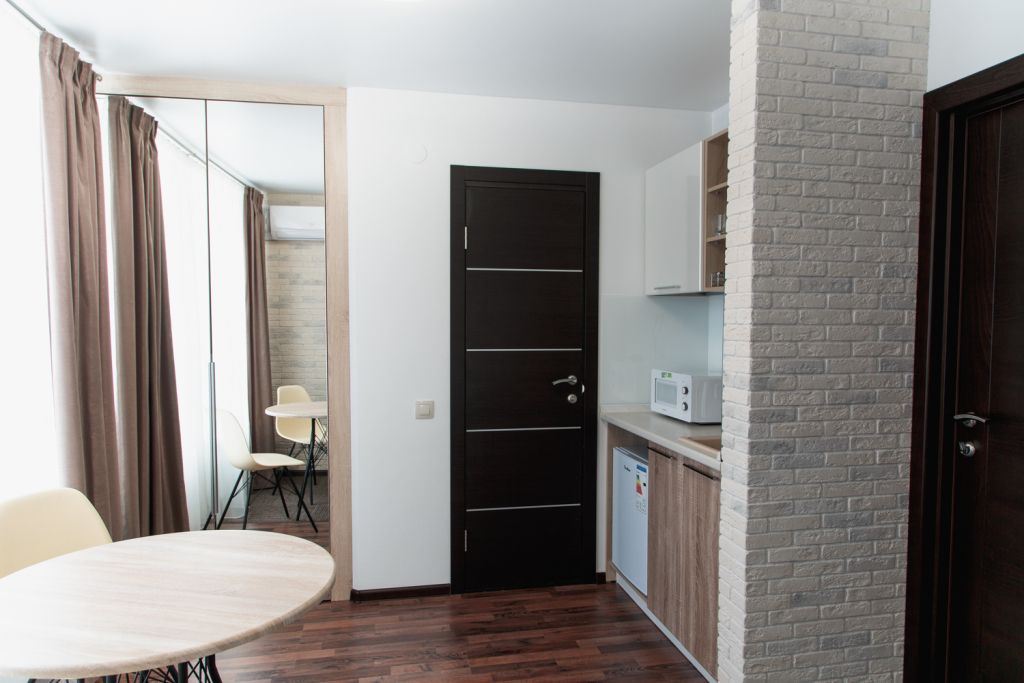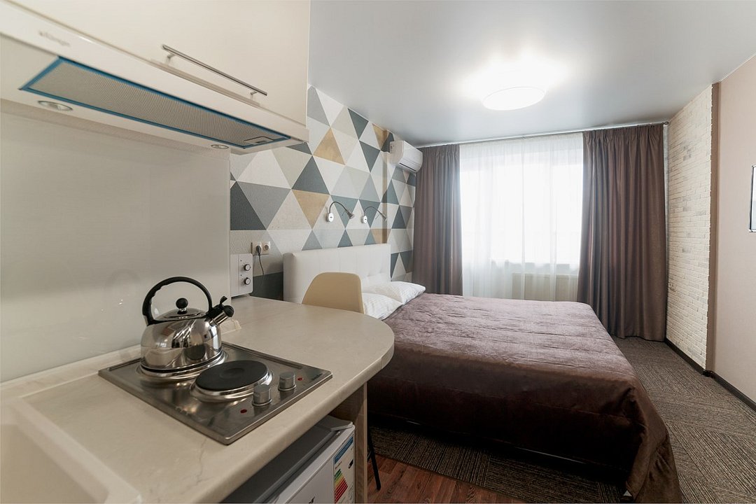 Небольшой, но очень уютный номер. Большая кровать, и миникухня, делают номер функциональным. Оснащен всем необходимым для длительного проживания.Услуги и удобства