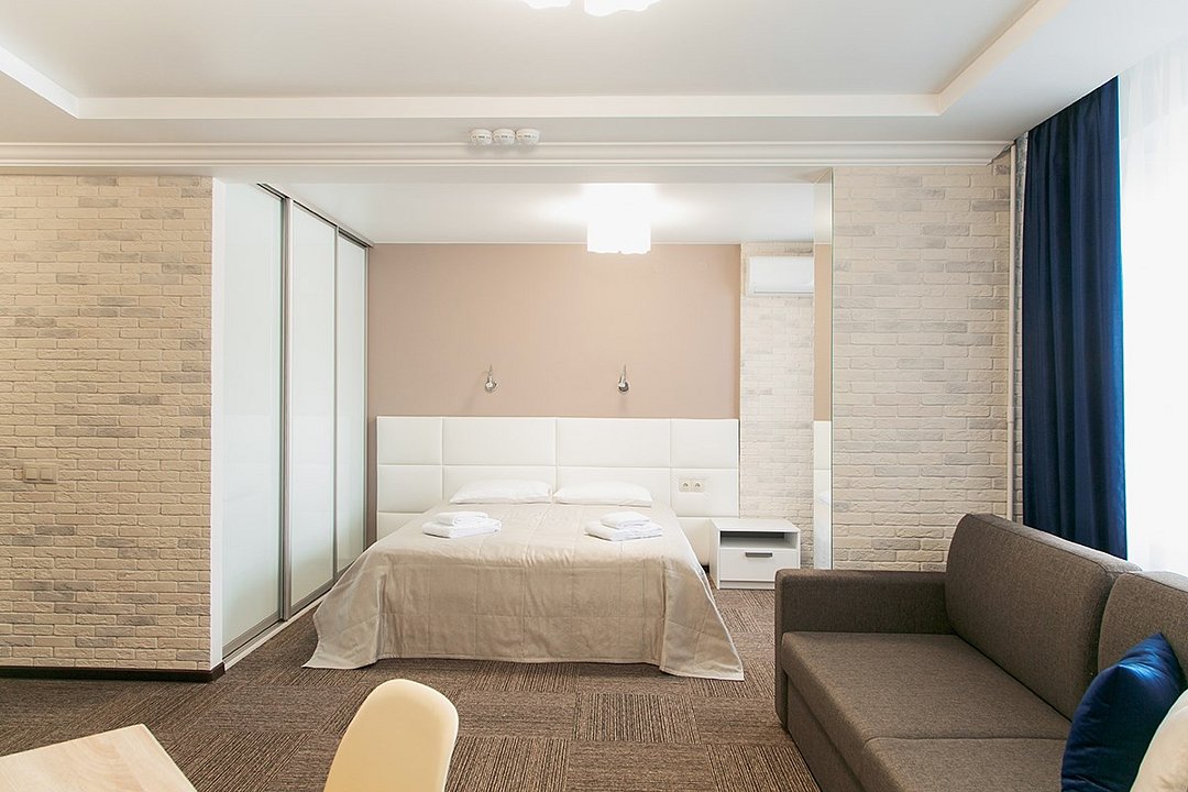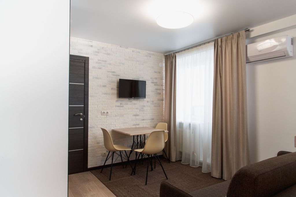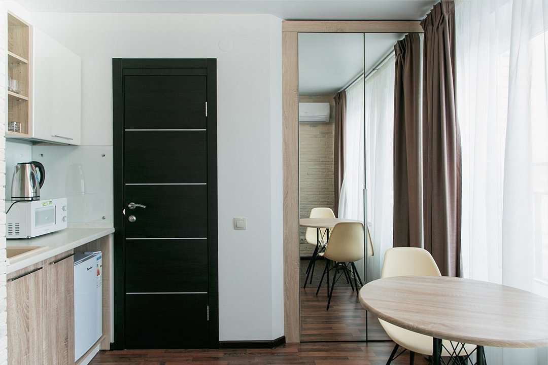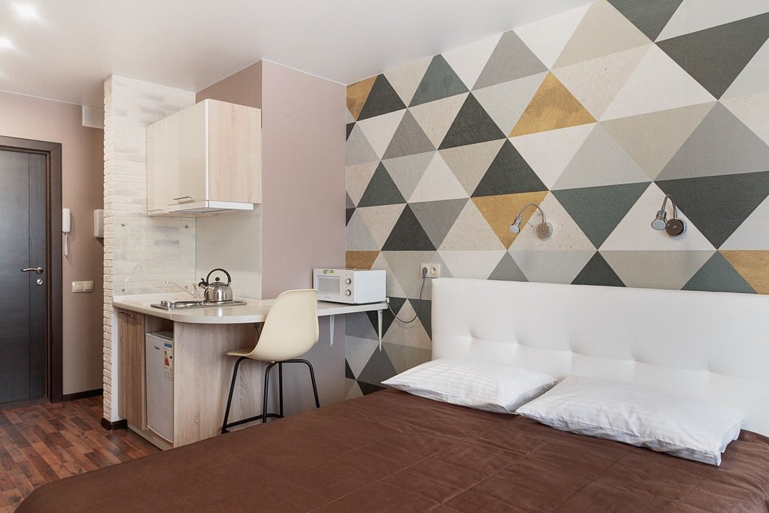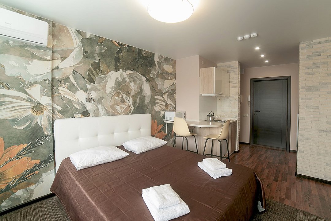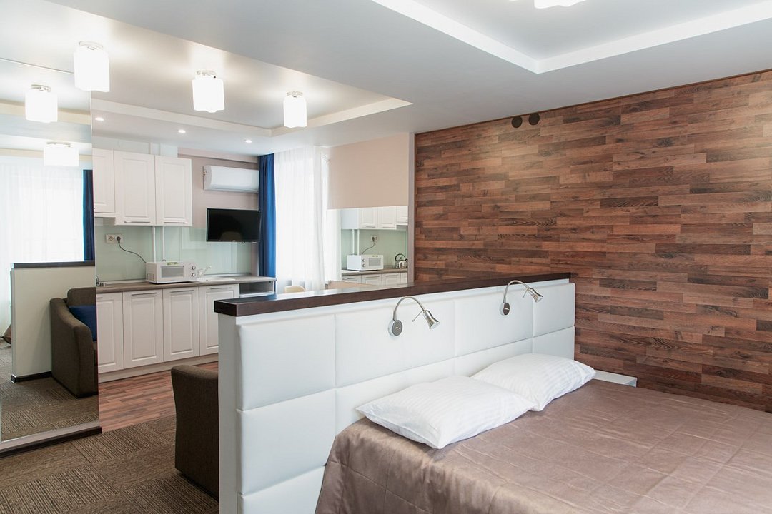 Небольшой, но очень уютный номер. Большая кровать, и миникухня, делают номер функциональным. Оснащен всем необходимым для длительного проживания.Услуги и удобства