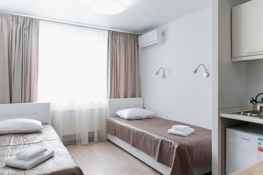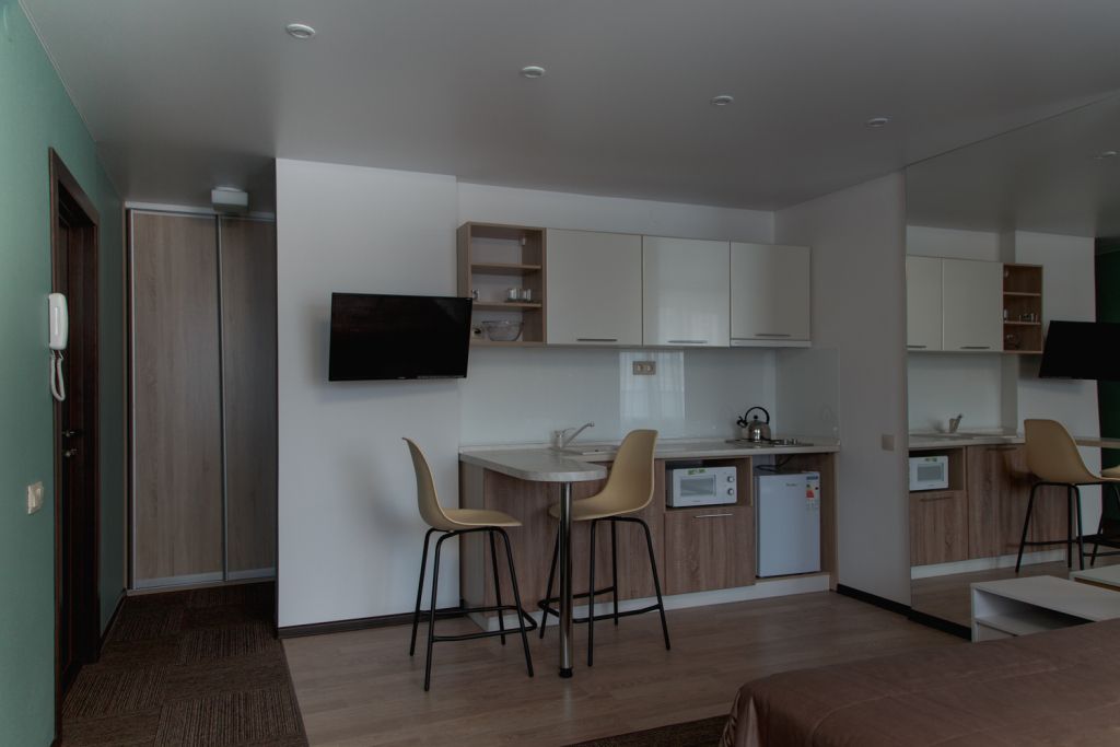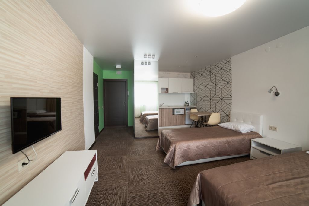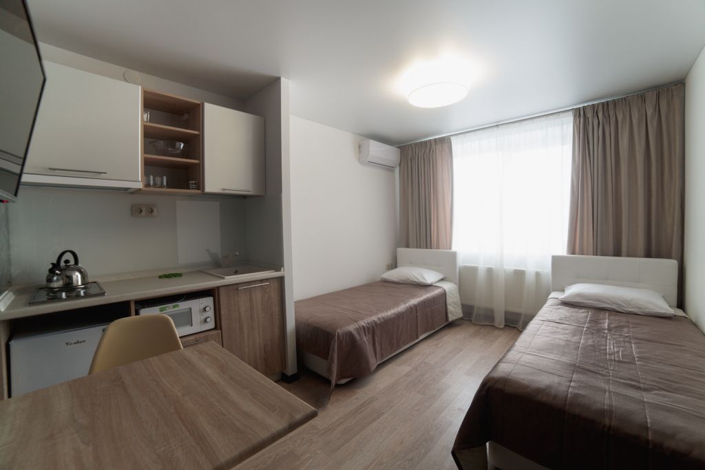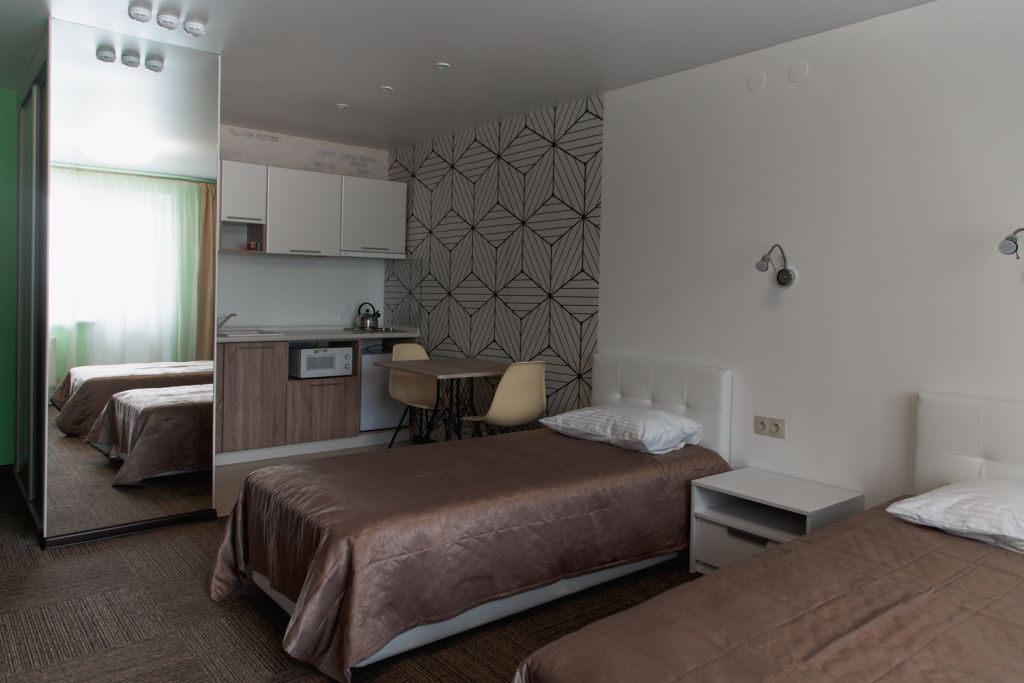 Номер категории стандарт двухместный с двумя кроватями. Отлично подойдет для длительного проживания, особенно для гостей, которые приезжают в наш город в командировку. Каждый номер имеет миникухню.Услуги и удобства