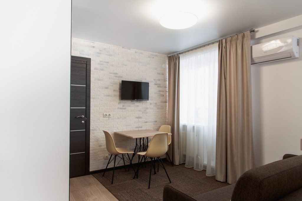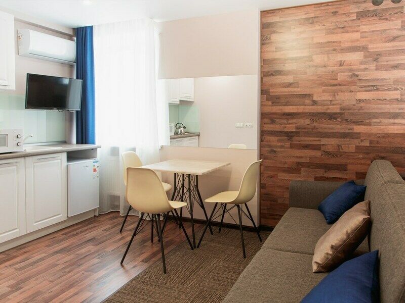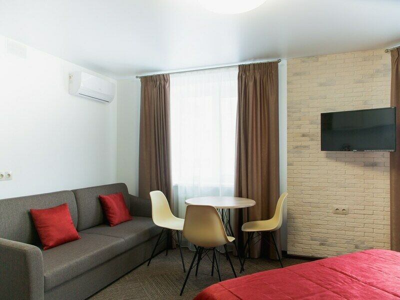 Гостиница разместилась в трехэтажном жилом доме (без лифта) и включает номера категории Стандарт и Студия, оборудованные мини-кухней с бытовой техникой. Небольшой номерной фонд рассчитанные на единовременное заселение 25 человек. Комнаты хорошо меблированы, есть вместительный шкаф-купе, стол, телевизор-ЖК, кондиционер. В собственной ванной, оборудованной душем, гости найдут все необходимые косметические принадлежности.
