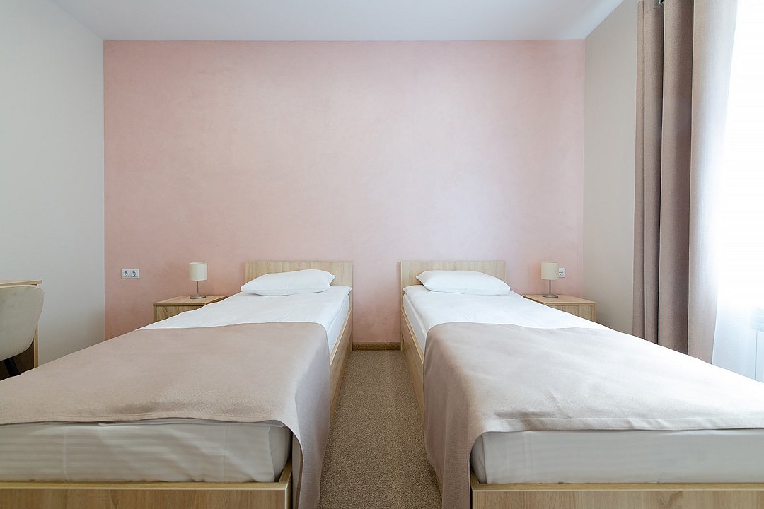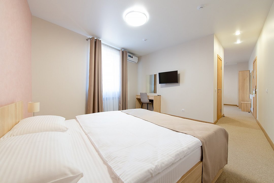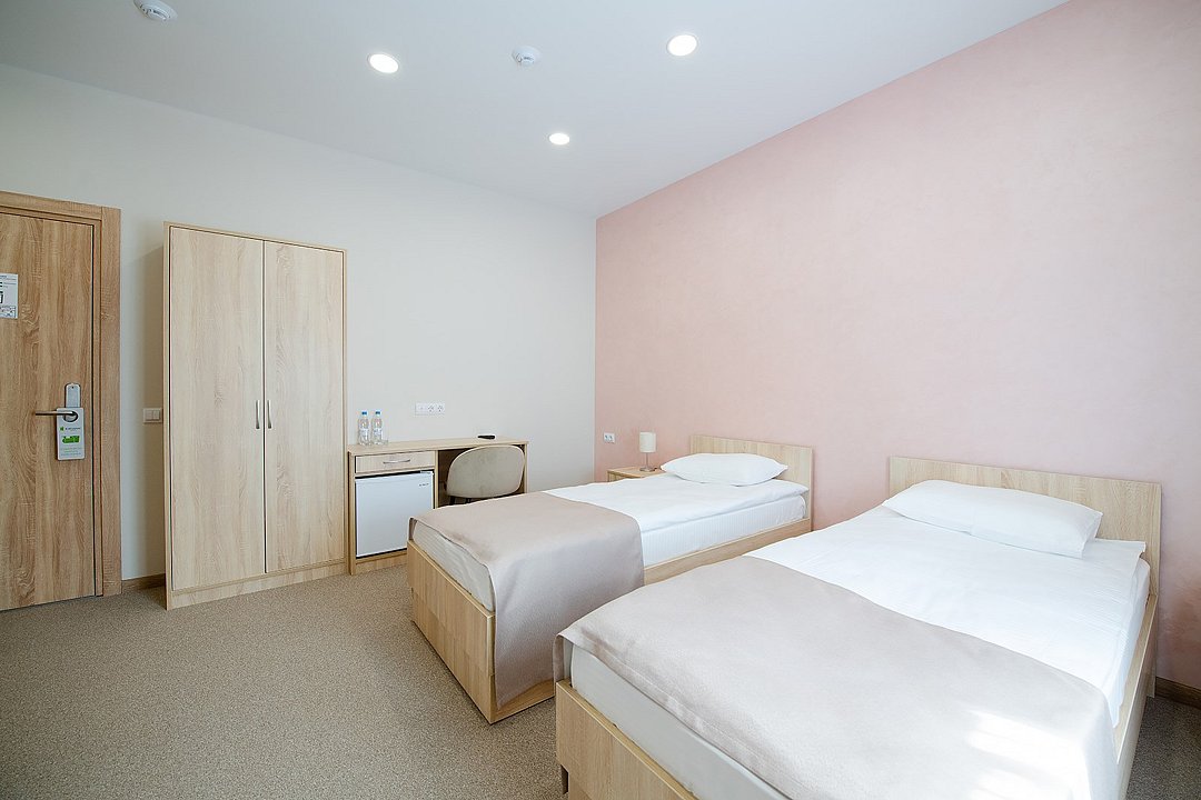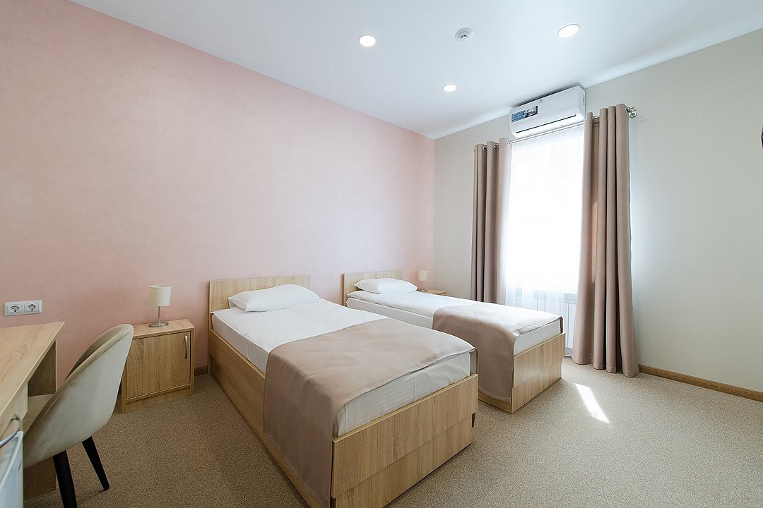 Уютные номера, с двумя односпальными кроватями. В номерах данной категории есть телевизор, холодильник, стол, шкаф с сейфом для ценных вещей и документов с индивидуальным кодовым замком, холодильник, кондиционер, прикроватные тумбочки со светильниками. В ванной комнате: душевая, туалет, фен, средства личной гигиены и полотенца.Услуги и удобства