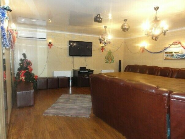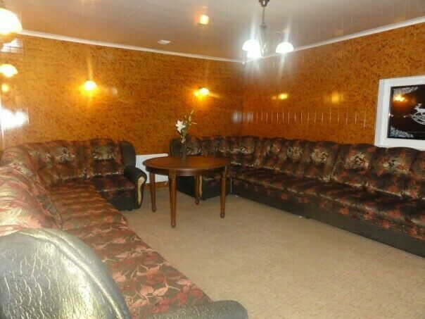 В коттедже большой холл, холодильник, шкафы для посуды, микроволновая печь, кожаные диваны, выходы к мангалу, в зону бани, бильярдную комнату (дом до 40 человек). В номере душевая кабина,кровати,санузел.