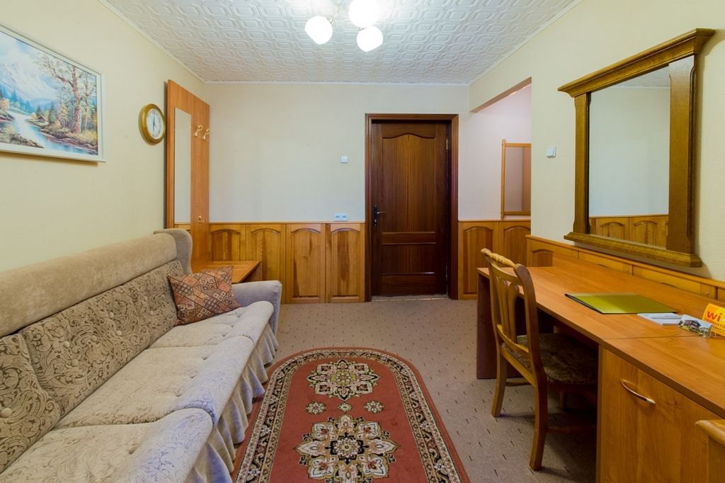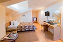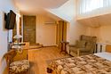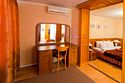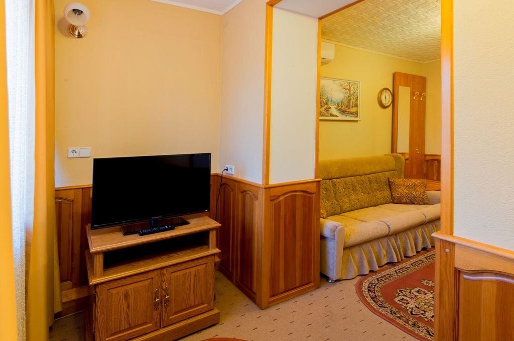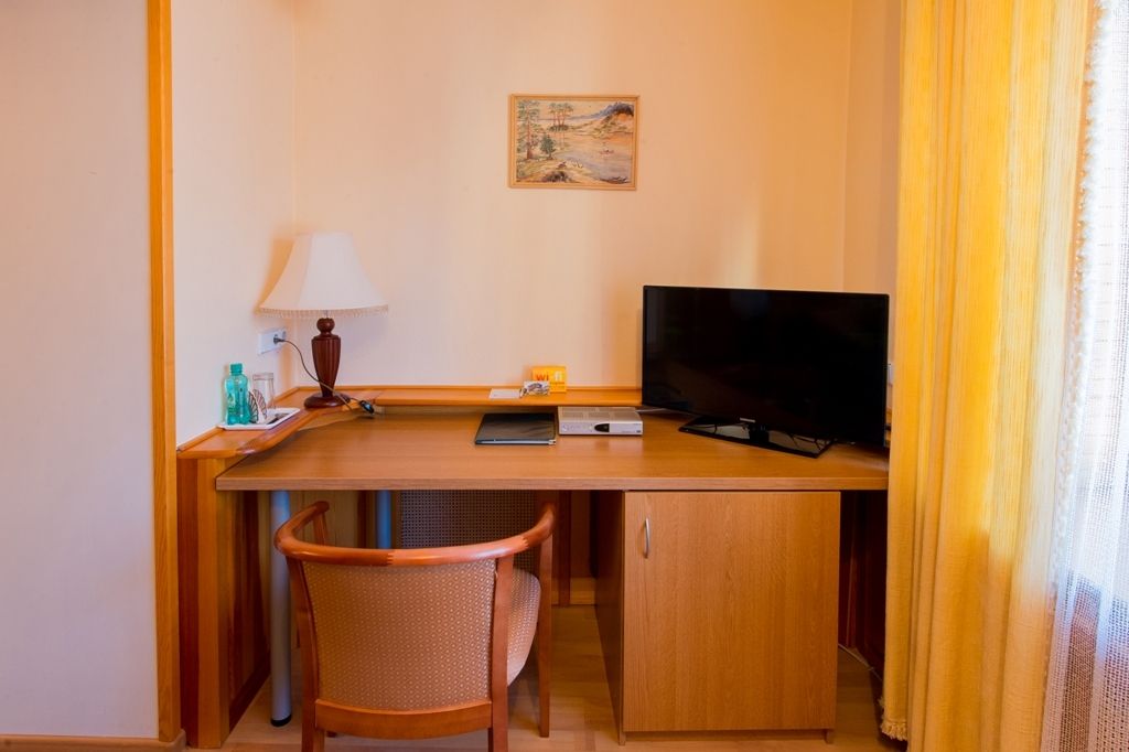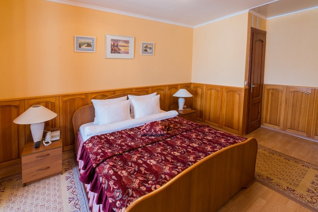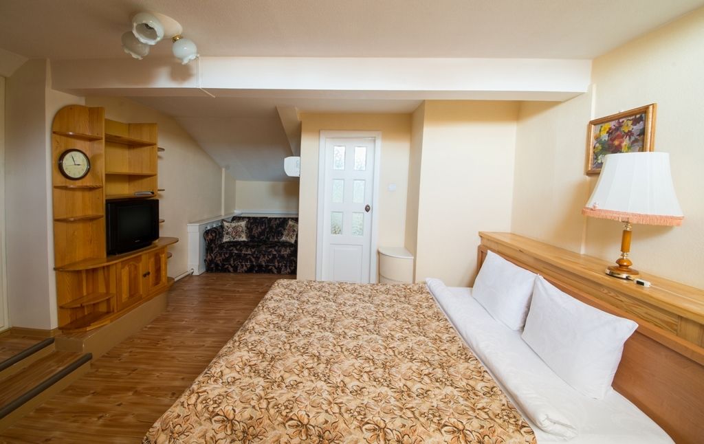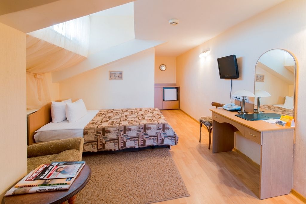Номер уютно обставлен и оснащён необходимым, чтобы отдохнуть после долгого и насыщенного дня. Имеются телевизор и халат. Оснащение зависит от выбранной категории номера.