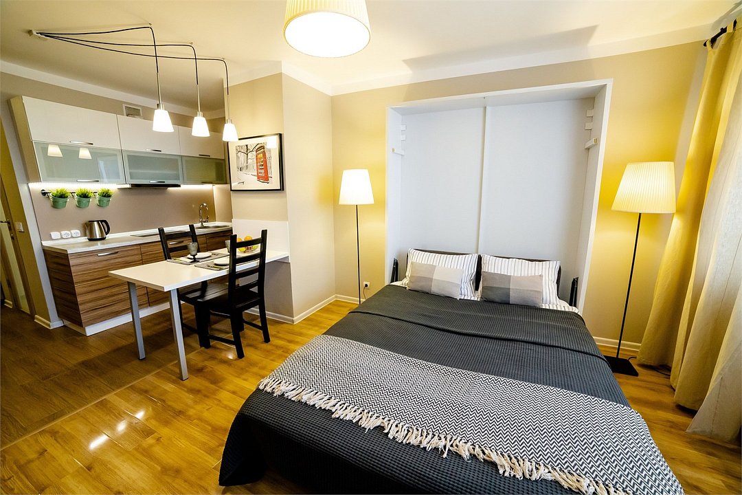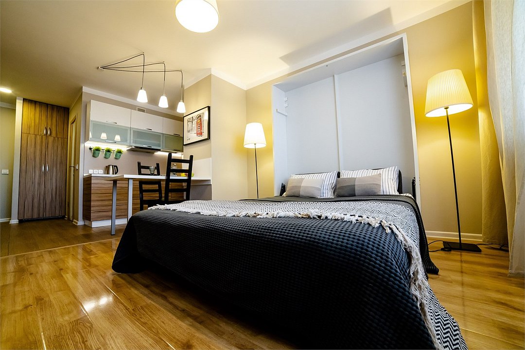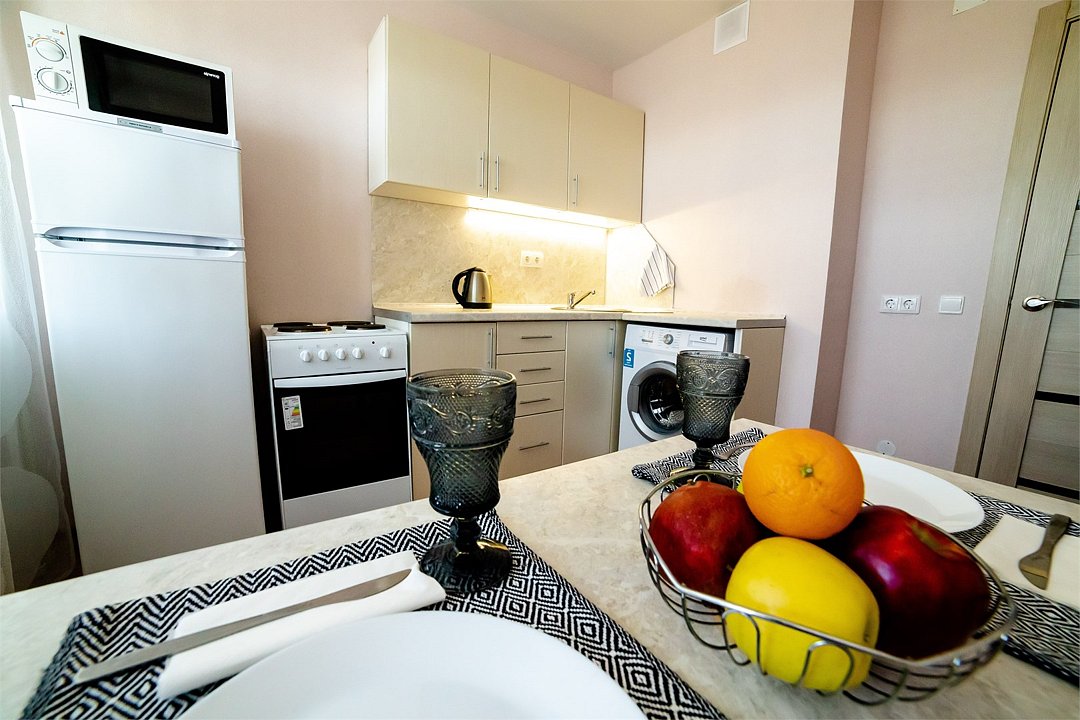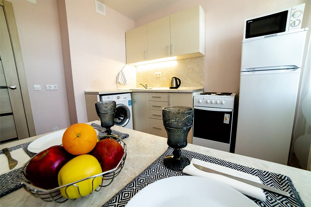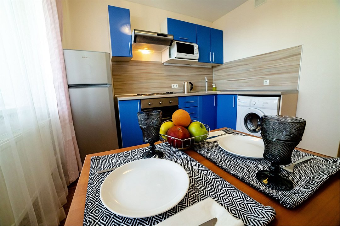 кабельное телевидение, Wi-Fi, интернет, холодильник, фен, плита для приготовления пищи, микроволновая печь, утюг, ванна или душевая кабина, водонагреватель, банные полотенца, балкон с красивым видом, двуспальная кровать, гладильная доска, шкаф для одежды, вешалки, обеденный стол, зеркало, кухня, набор посуды, обслуживание номеров, стиральная машина, чайник, унитаз, раковина, вид на город, стаканы, столовые приборы, стул, стол, туалетные средства, сушилка для белья, цифровое тв, диван-кровать, телевизор с плоским экраном, шкаф-купе, мыло, затемняющая штора, зеркало в полный рост, без питомцевВ апартаментах