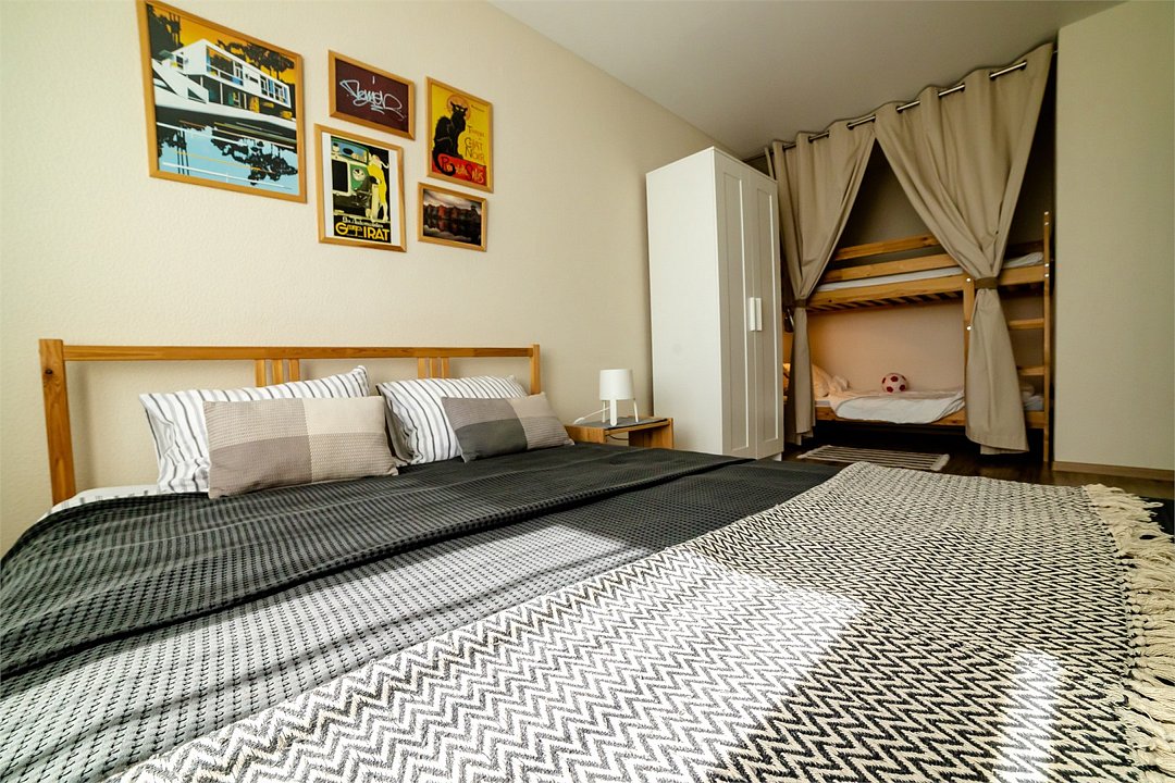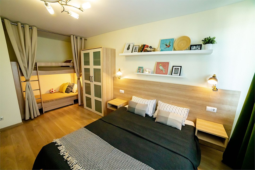 кабельное телевидение, Wi-Fi, интернет, холодильник, фен, плита для приготовления пищи, микроволновая печь, утюг, ванна или душевая кабина, водонагреватель, банные полотенца, балкон с красивым видом, двуспальная кровать, гладильная доска, шкаф для одежды, вешалки, обеденный стол, зеркало, кухня, набор посуды, обслуживание номеров, стиральная машина, чайник, унитаз, раковина, вид на город, стаканы, столовые приборы, стул, стол, туалетные средства, сушилка для белья, цифровое тв, телевизор с плоским экраном, шкаф-купе, двухъярусная кровать, мыло, затемняющая штора, зеркало в полный рост, без питомцевВ апартаментах