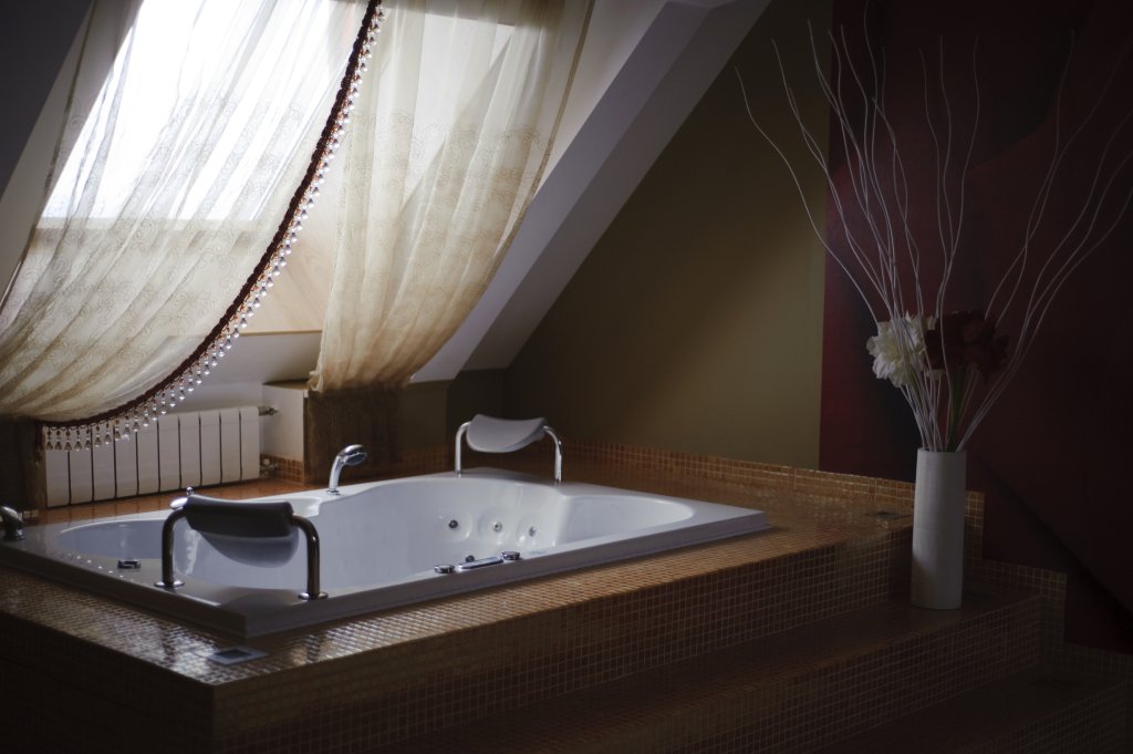 Бассейн переливного типа с внутренним освещением и противотоком. Гидромассажные форсунки, обеспечивающие противоток воды, необходимый для полной релаксации организма. Джакузи с аэро- и гидромассажем. Очистка воды ионами серебра.