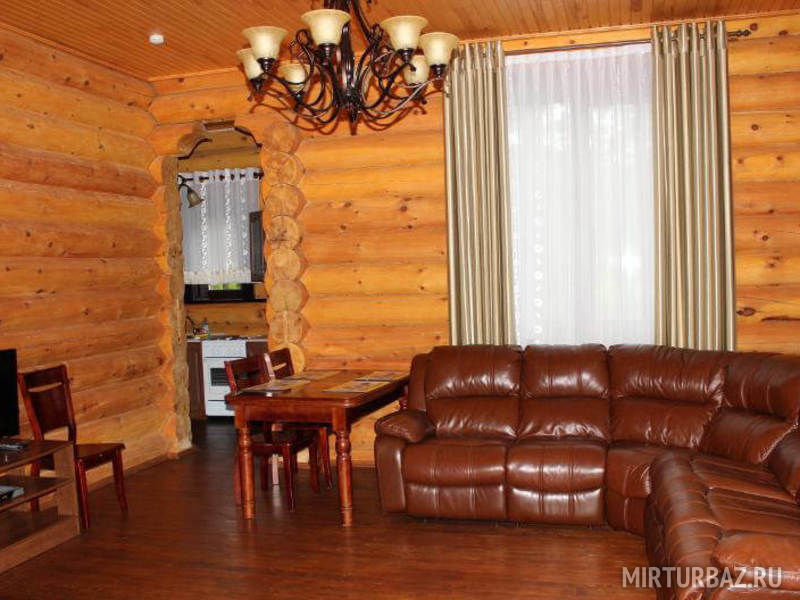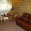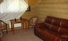 Люкс, 2-й этаж : Две комнаты, каждая по 16 м2, кожаная мебель, 2-х спальный гарнитур, ТВ, обеденный стол, стулья, холодильник, СВЧ-печь, чайник, посуда