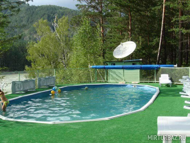 Преимущества: большая красивая территория в сосновом лесу, напротив расположен комплекс Тавдинских пещер, отличный пляж на берегу Катуни, бассейн на берегу, в пределах пешей доступности расположено искусственное озеро "Бирюзовая Катунь".