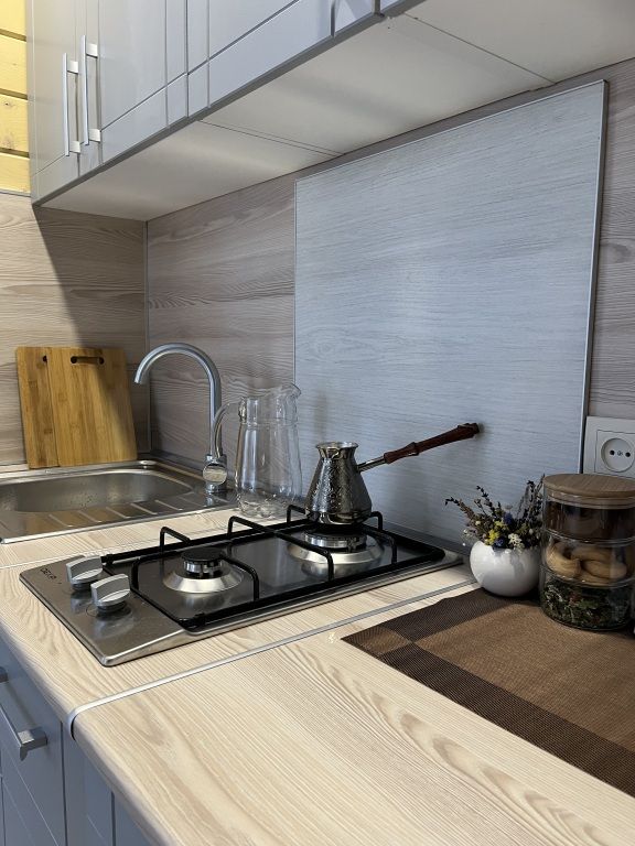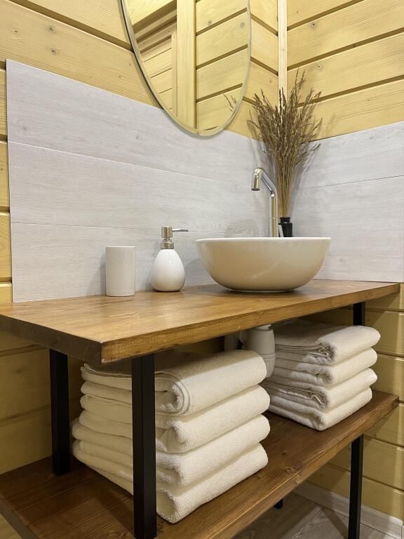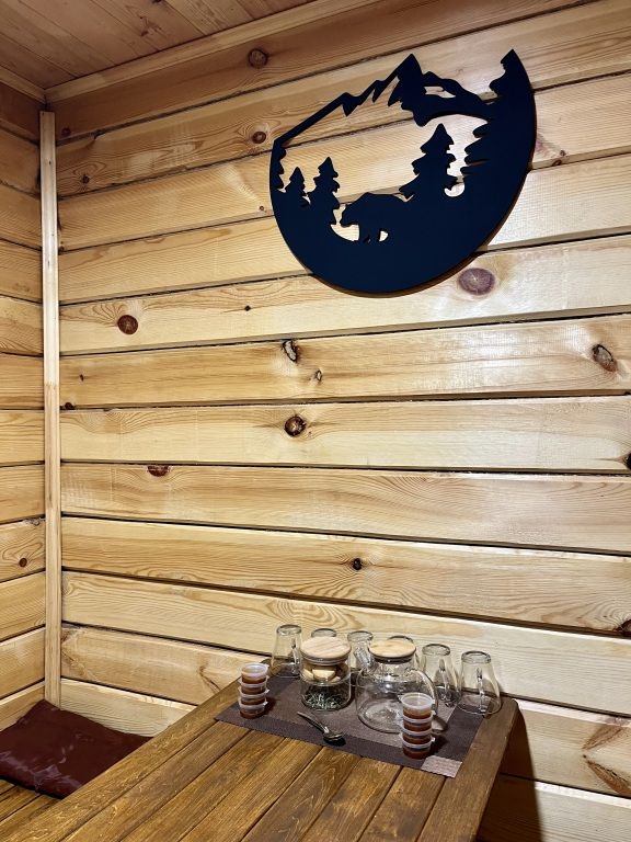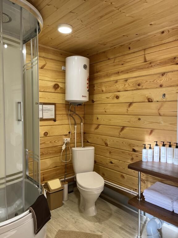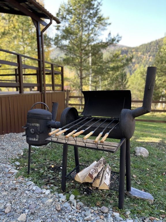 Также гостям доступен водонагреватель, интернет Wi-Fi, Wi-Fi колонка, детские и взрослые настольные игры, телевизор с функцией smart TV. Есть своя скважина с питьевой водой и большой мангал с местом под казан — гости могут одновременно жарить мясо и готовить плов в казане или коптить рыбу и варить уху.