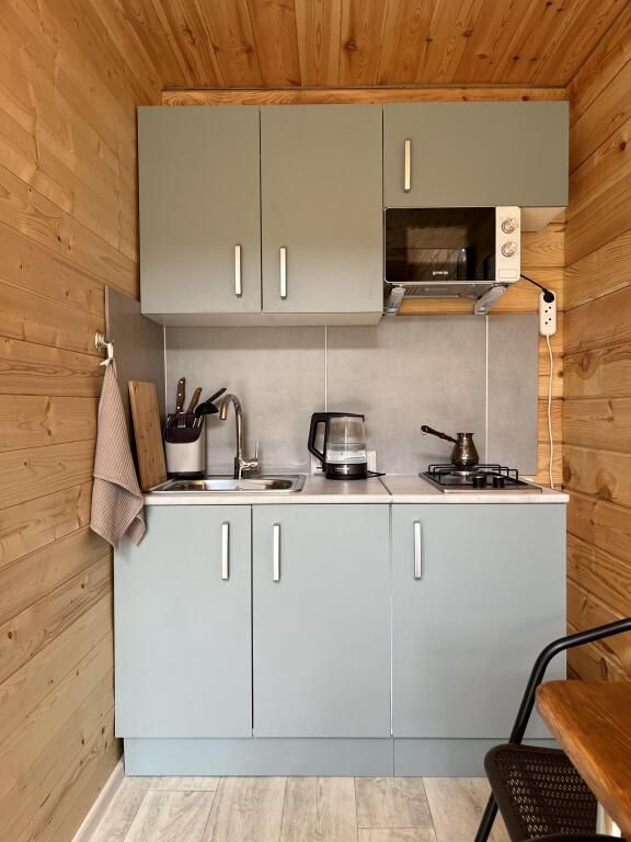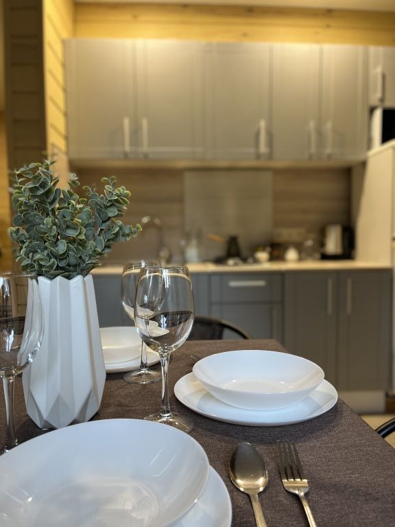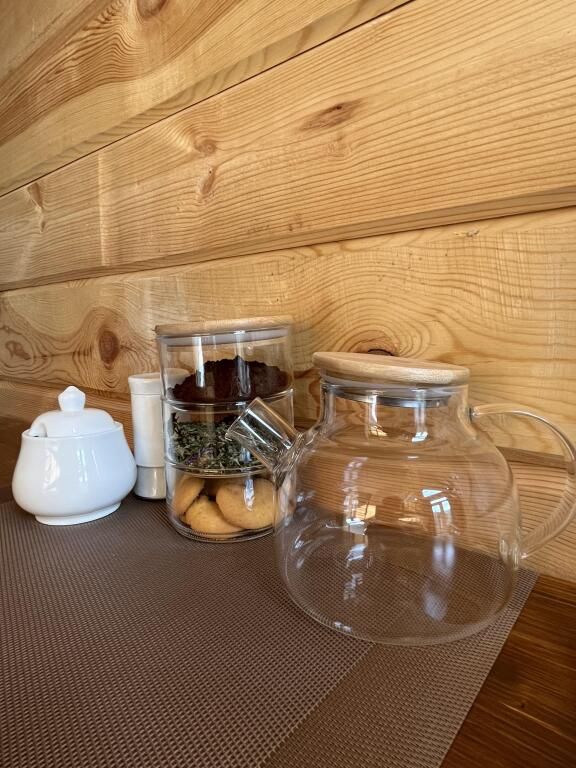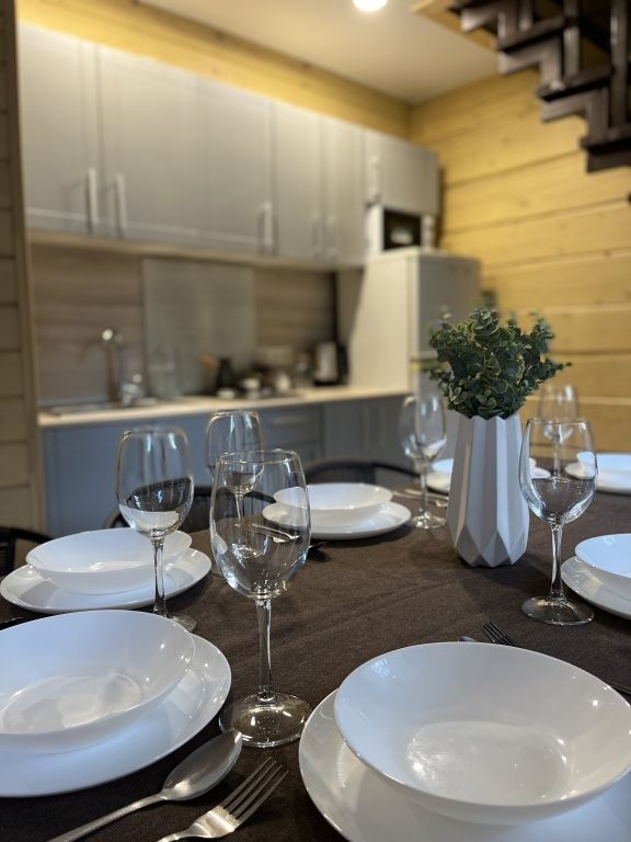 В домах есть всё необходимое для проживания. Имеется оборудованная кухня, всё для приготовления и принятия пищи: холодильник с морозильной камерой, газовая плита, чайник, микроволновая печь, турка, набор посуды. В спальнях есть кровати 160 и 140 см, с ортопедическими матрасами Askona а также диваны. В спальнях на втором этаже есть шторы blackout, прикроватная тумбочка с книгой для каждого гостя и вешалки для одежды. Предоставляется постельное бельё и полотенца для каждого гостя, набор гигиенических средств.