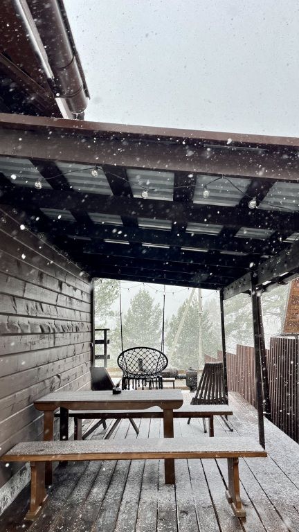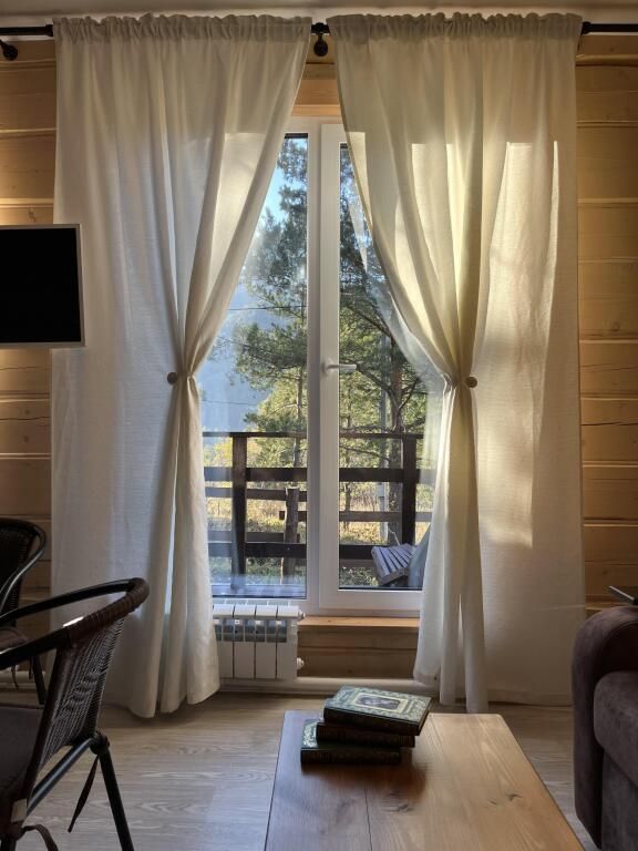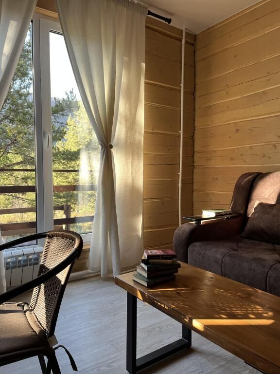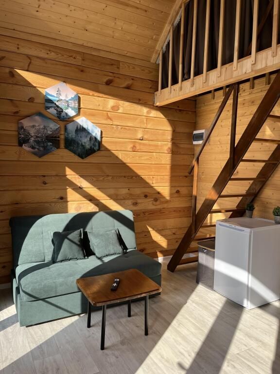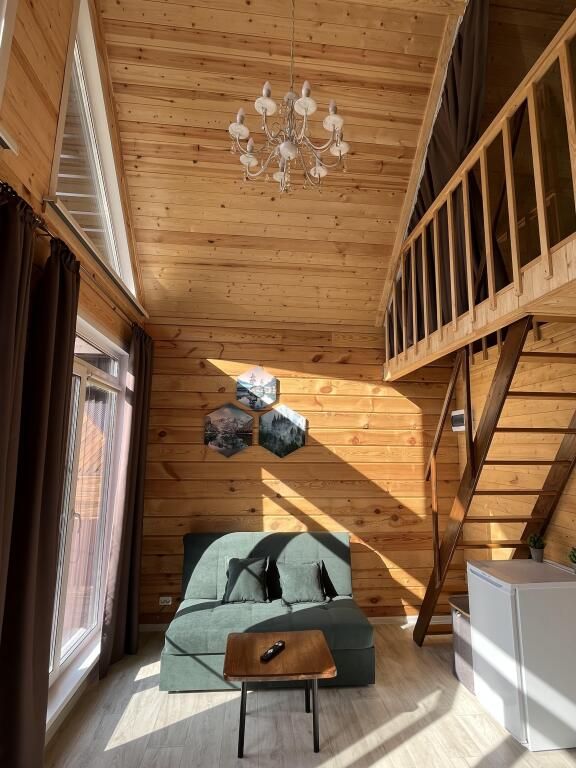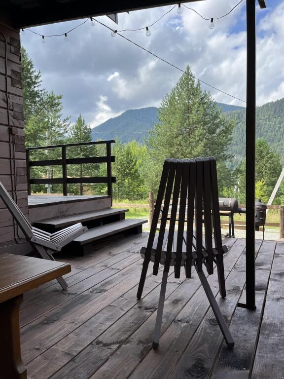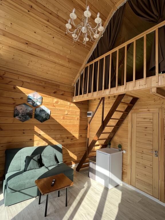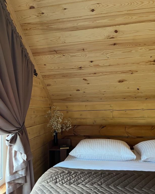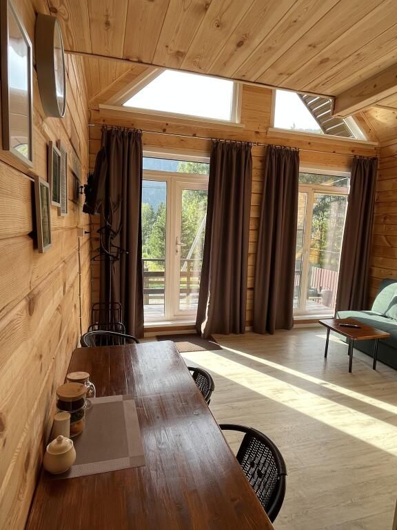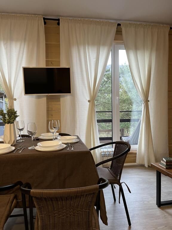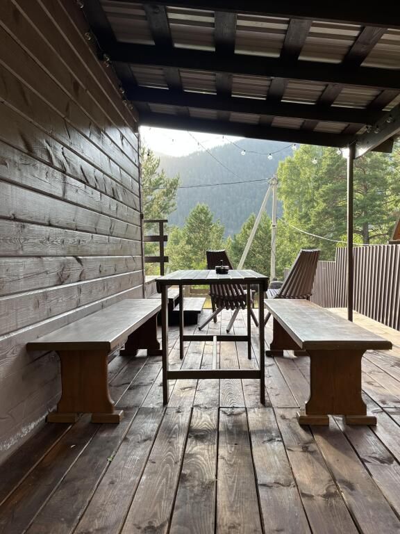 В доме предметы мебели ручной работы, а кровати и столы из массива дерева. Все удобства в доме. Один сан узел, душевая, горячая вода. Терраса у домов открывает вид на горы и лес.