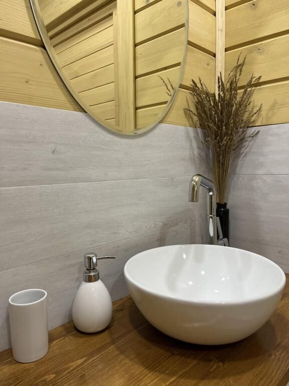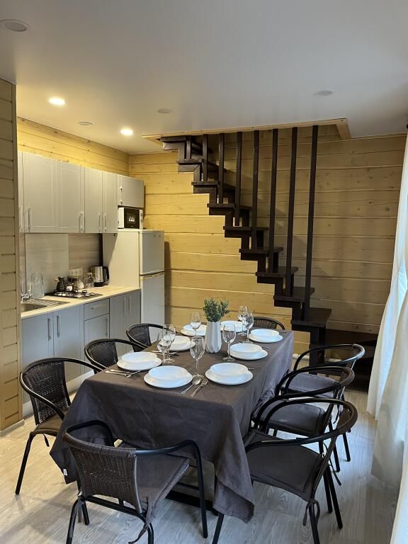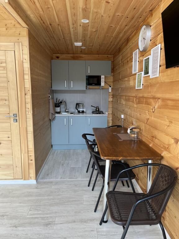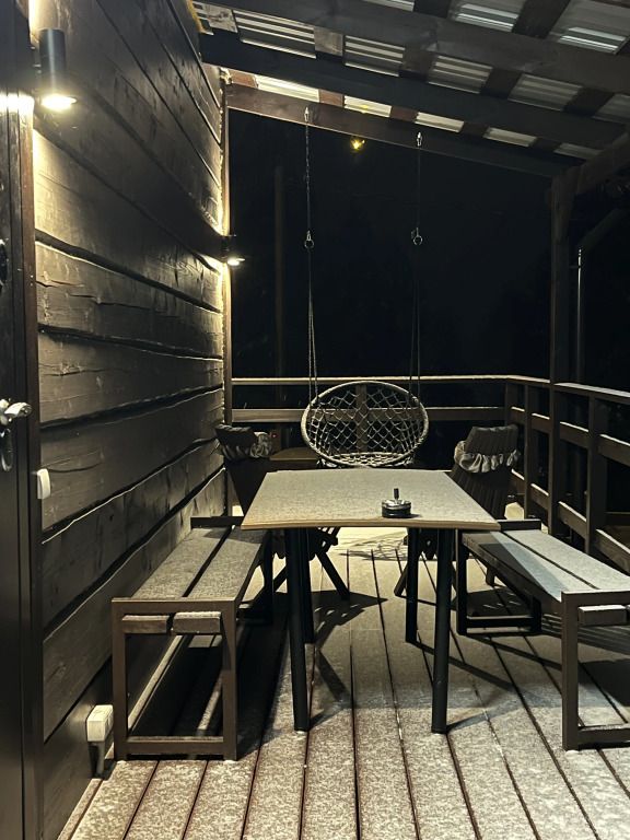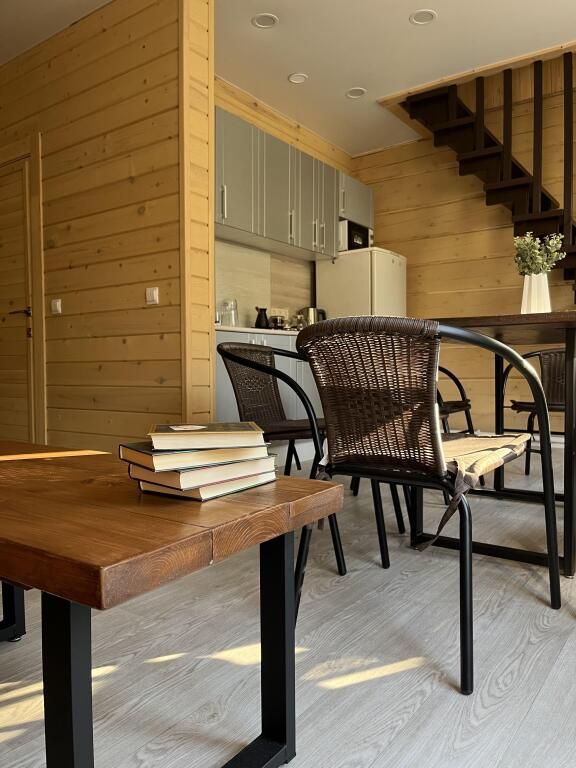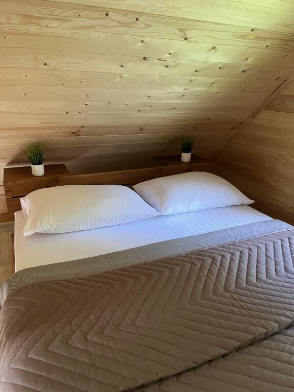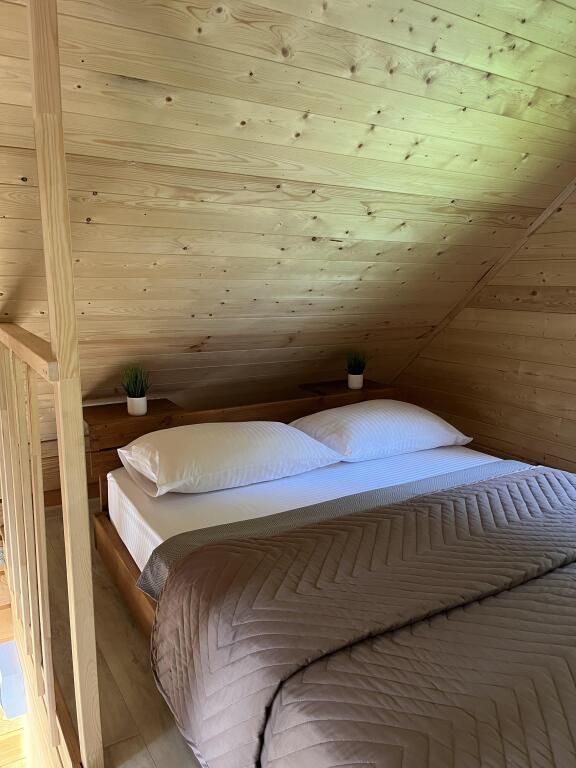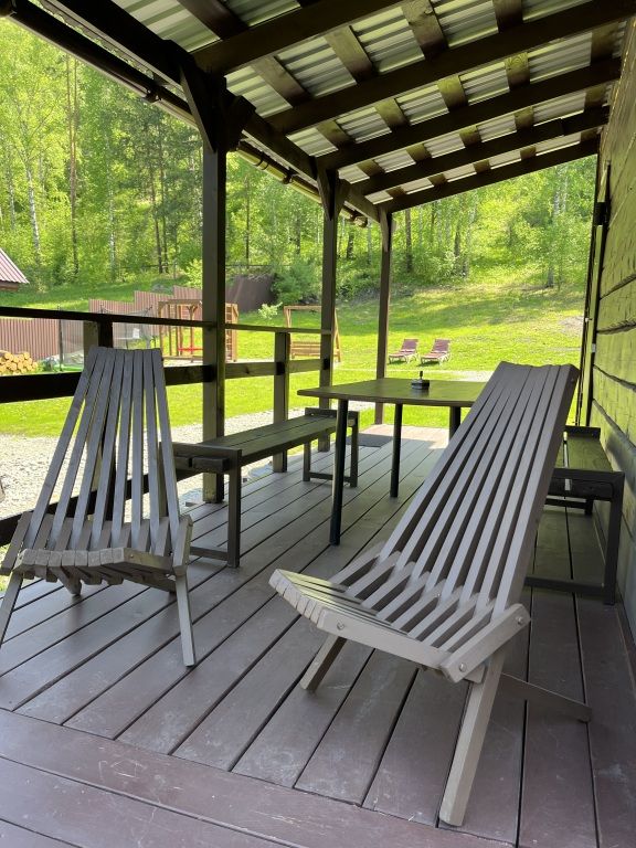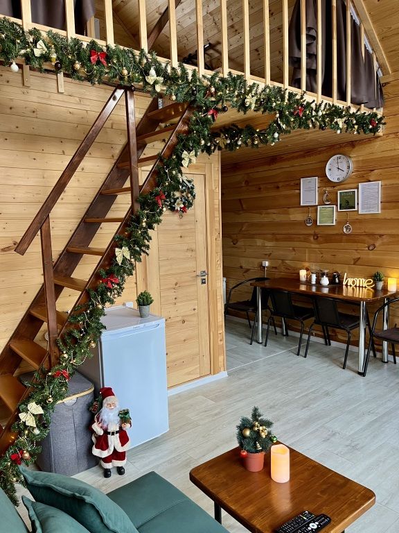 Деревянные дома построены в 2022 и 2023 годах. На территории располагаются два дома на 8 человек и на 4 человека. На территории имеется баня на дровах с тёплой комнатой отдыха, детская площадка, батут-манеж Unix 3 метра (детский/взрослый), качели, шезлонги с матрасами и подушками, спортивный инвентарь, беседка.