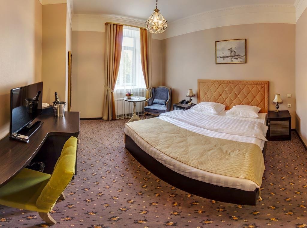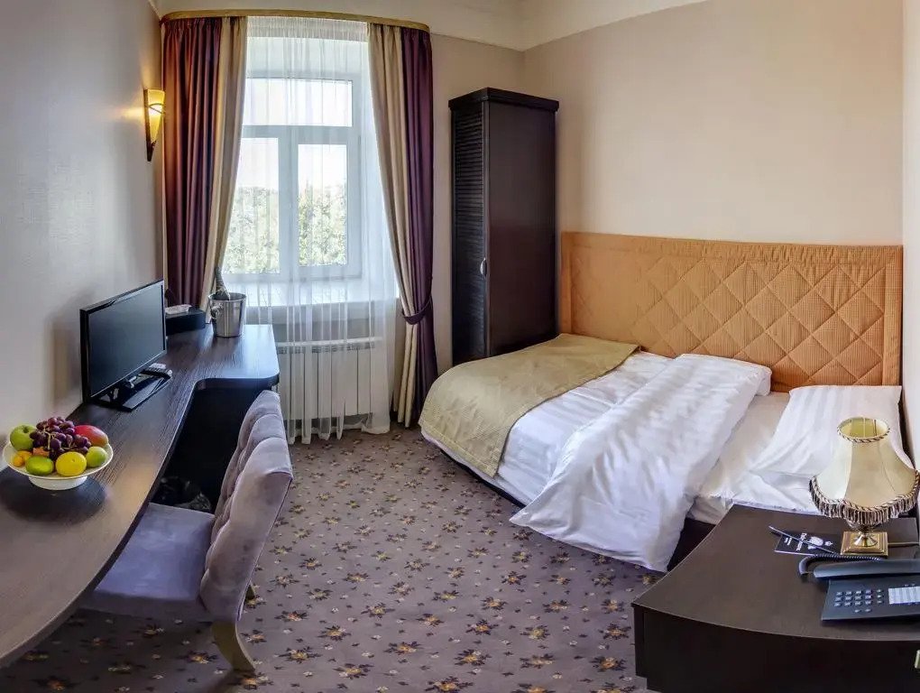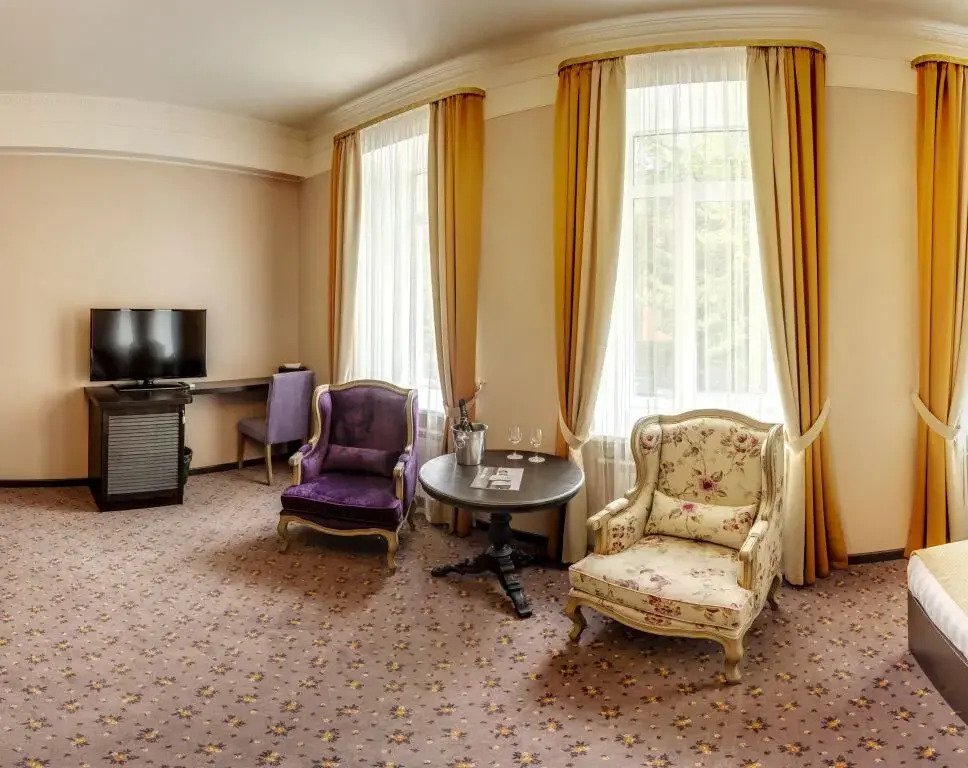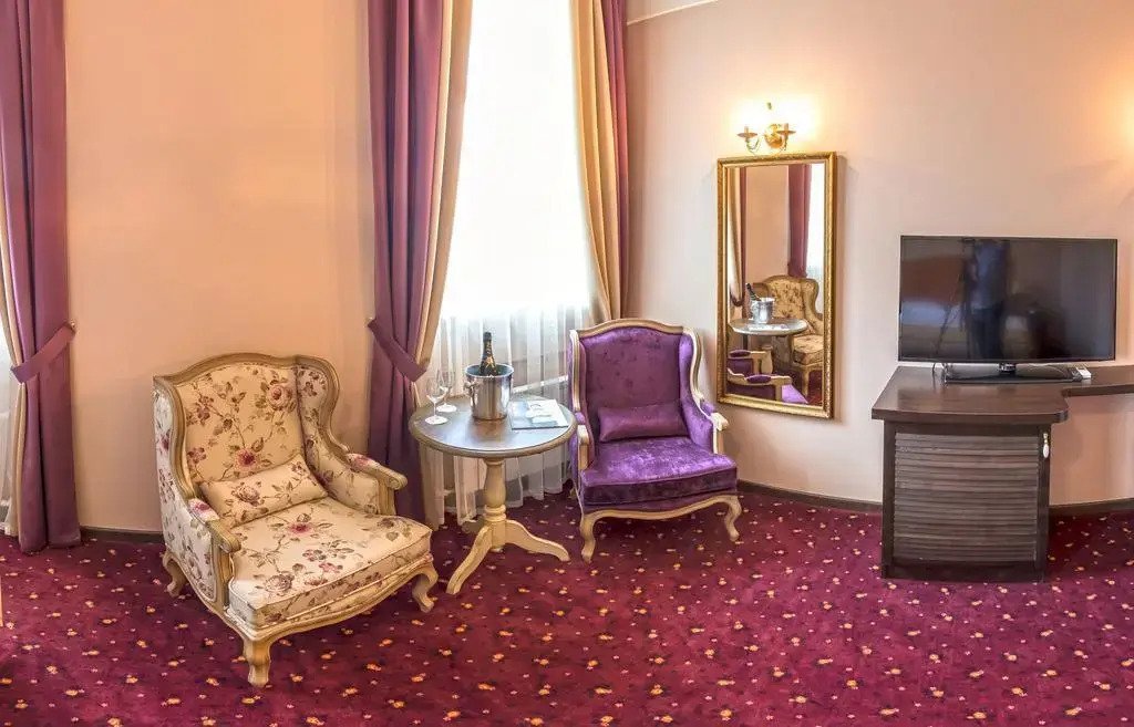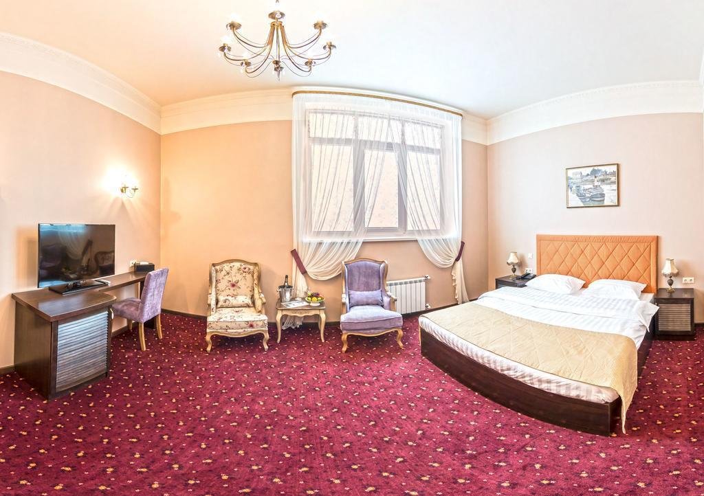 В номере вы найдёте телевизор, мини-бар и халат. Оснащение зависит от выбранной категории номера.