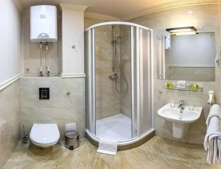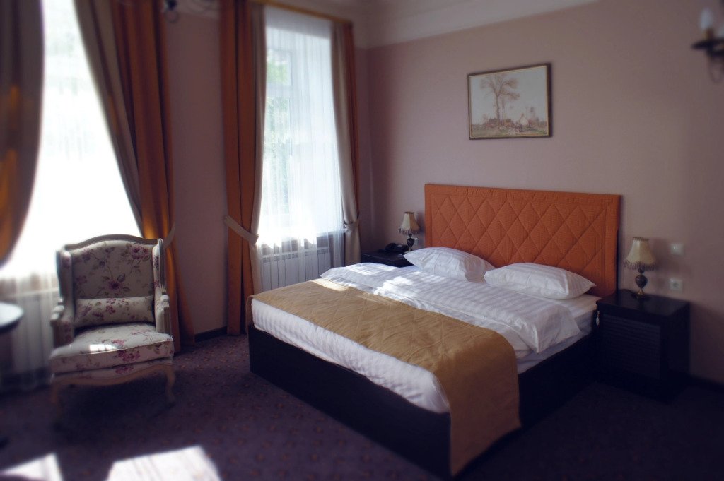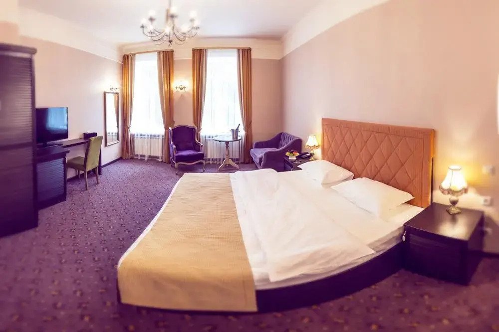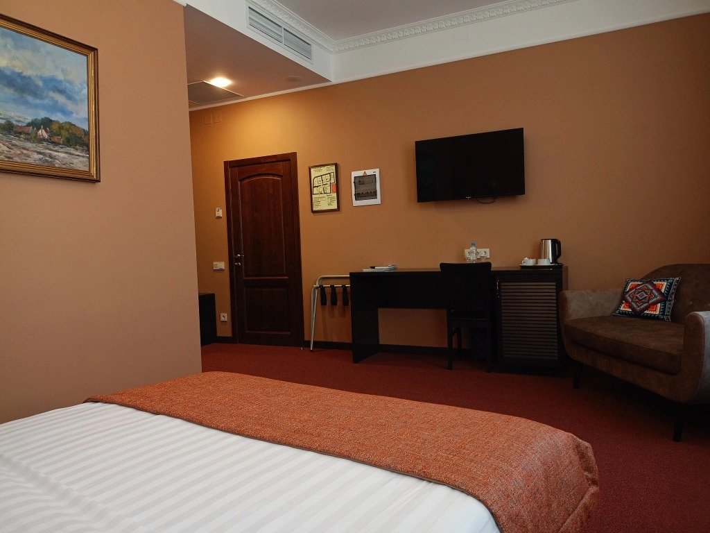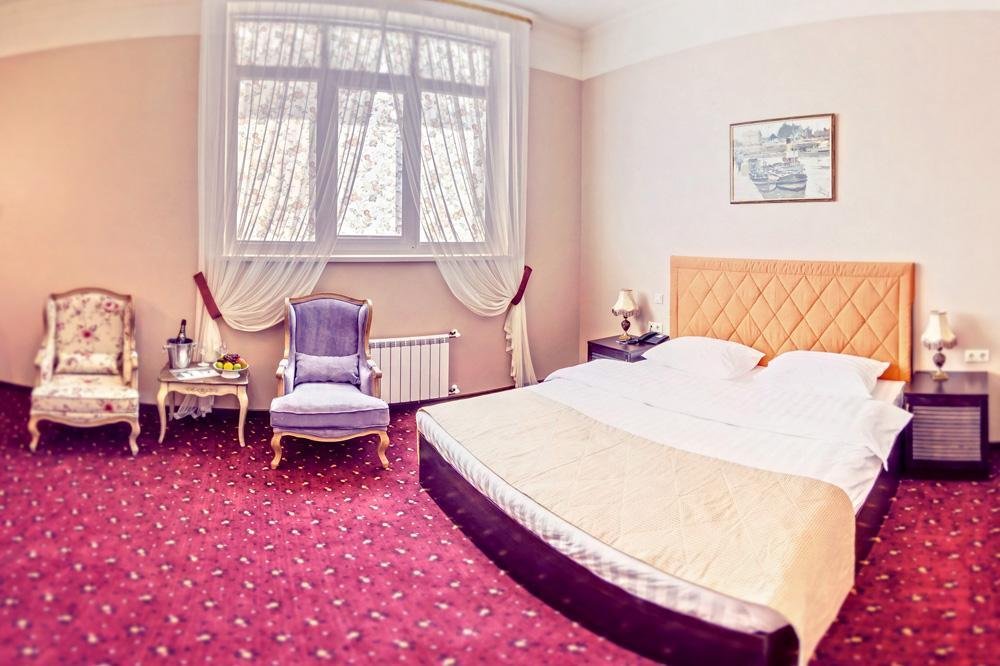 В номере вы найдёте телевизор, мини-бар и халат. Оснащение зависит от выбранной категории номера.